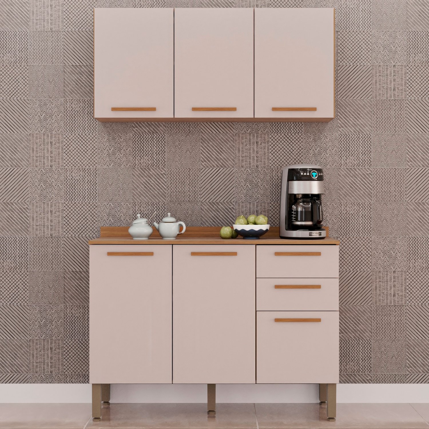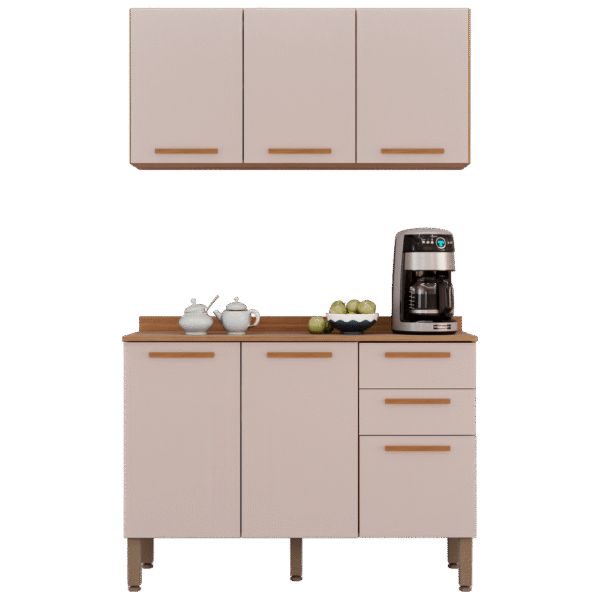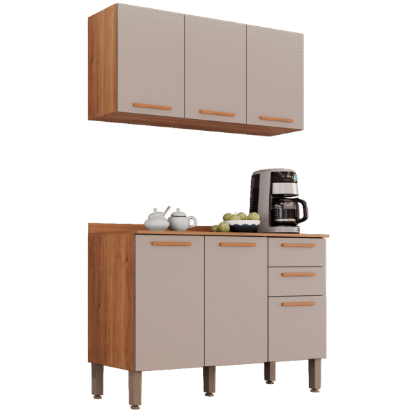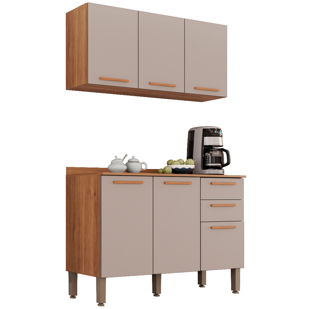 Armário Aéreo Triplo + Balcão New Valência Cinamomo/Off White – SALLÊTO