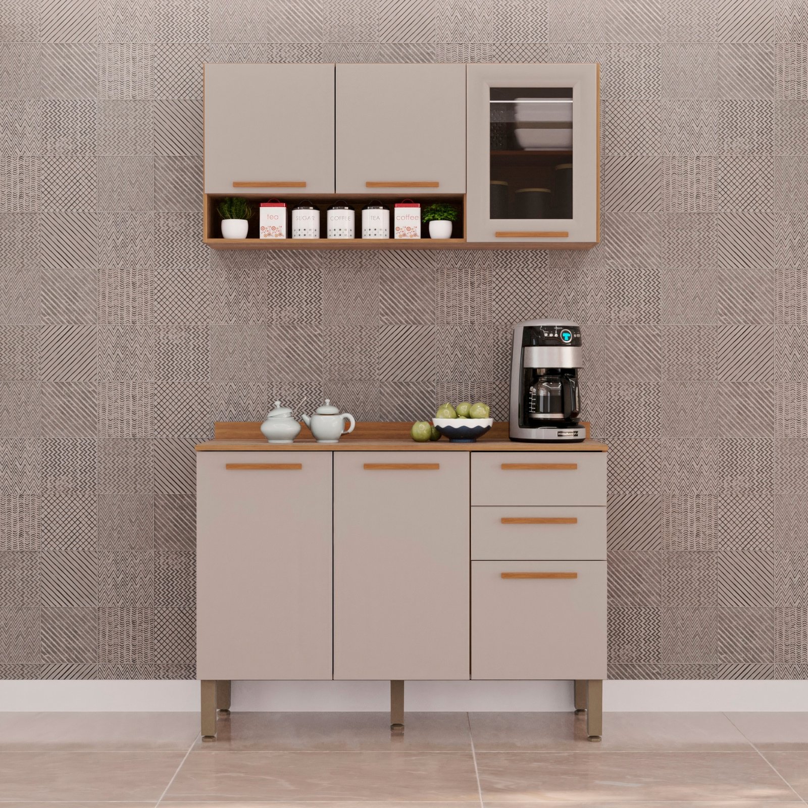Armário Aéreo Vidro Fumê + Balcão New Valência Cinamomo/Off White – SALLÊTO