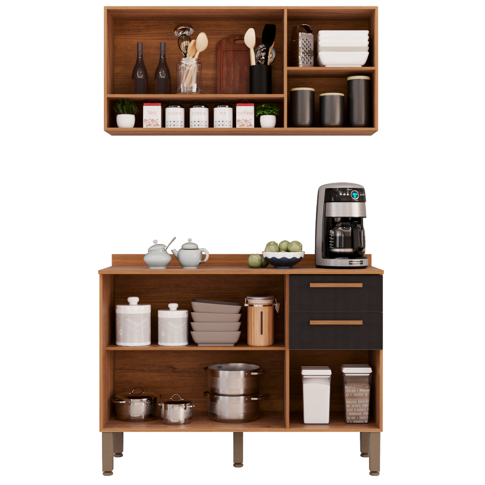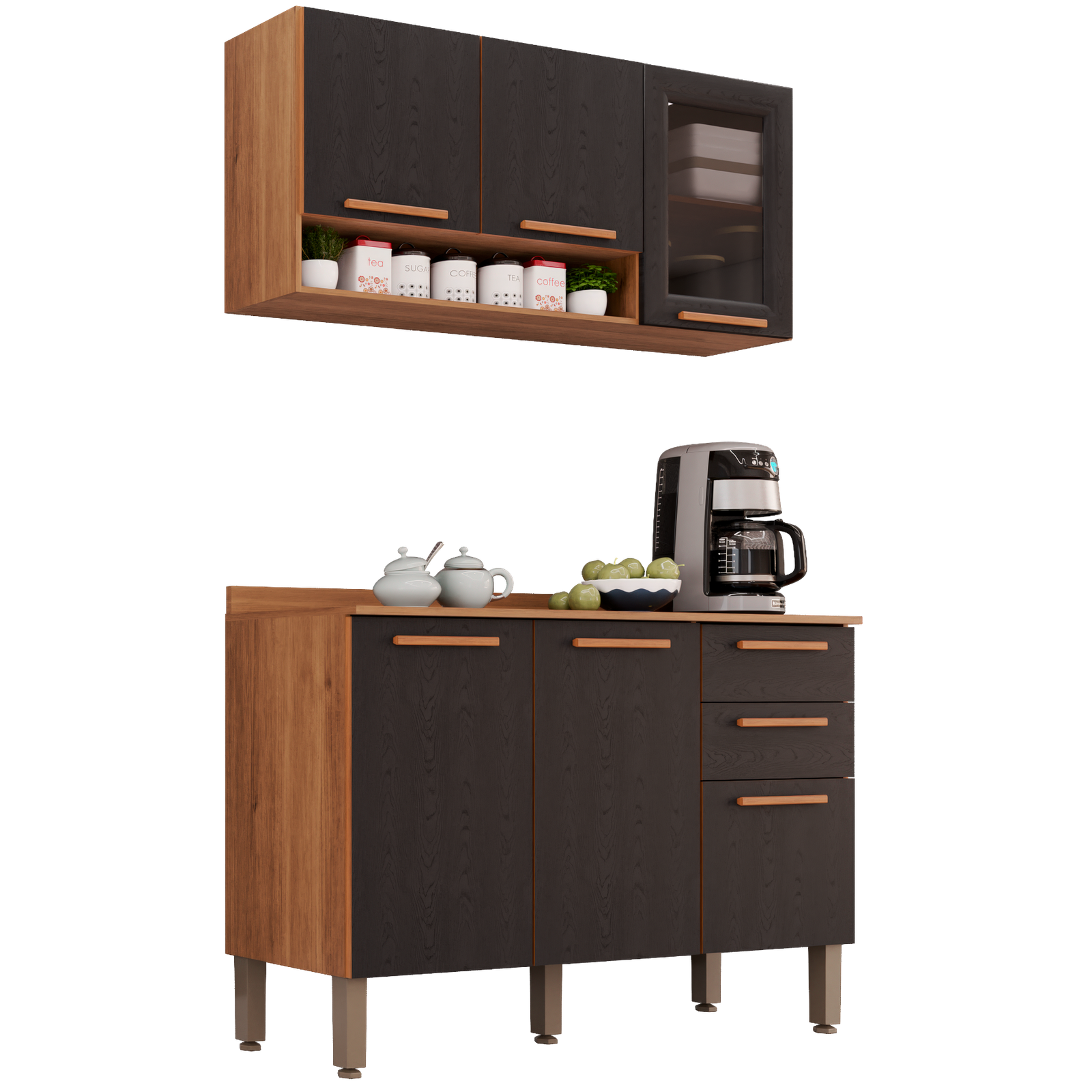 Armário Aéreo Vidro Fumê + Balcão New Valência Cinamomo/Preto – SALLÊTO