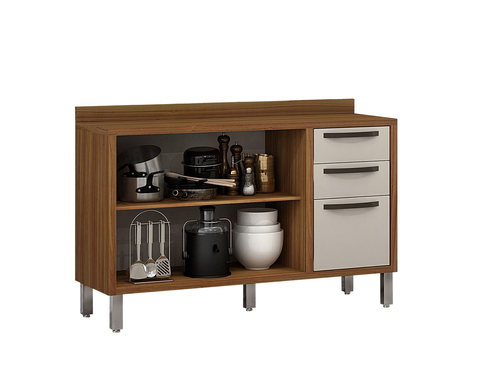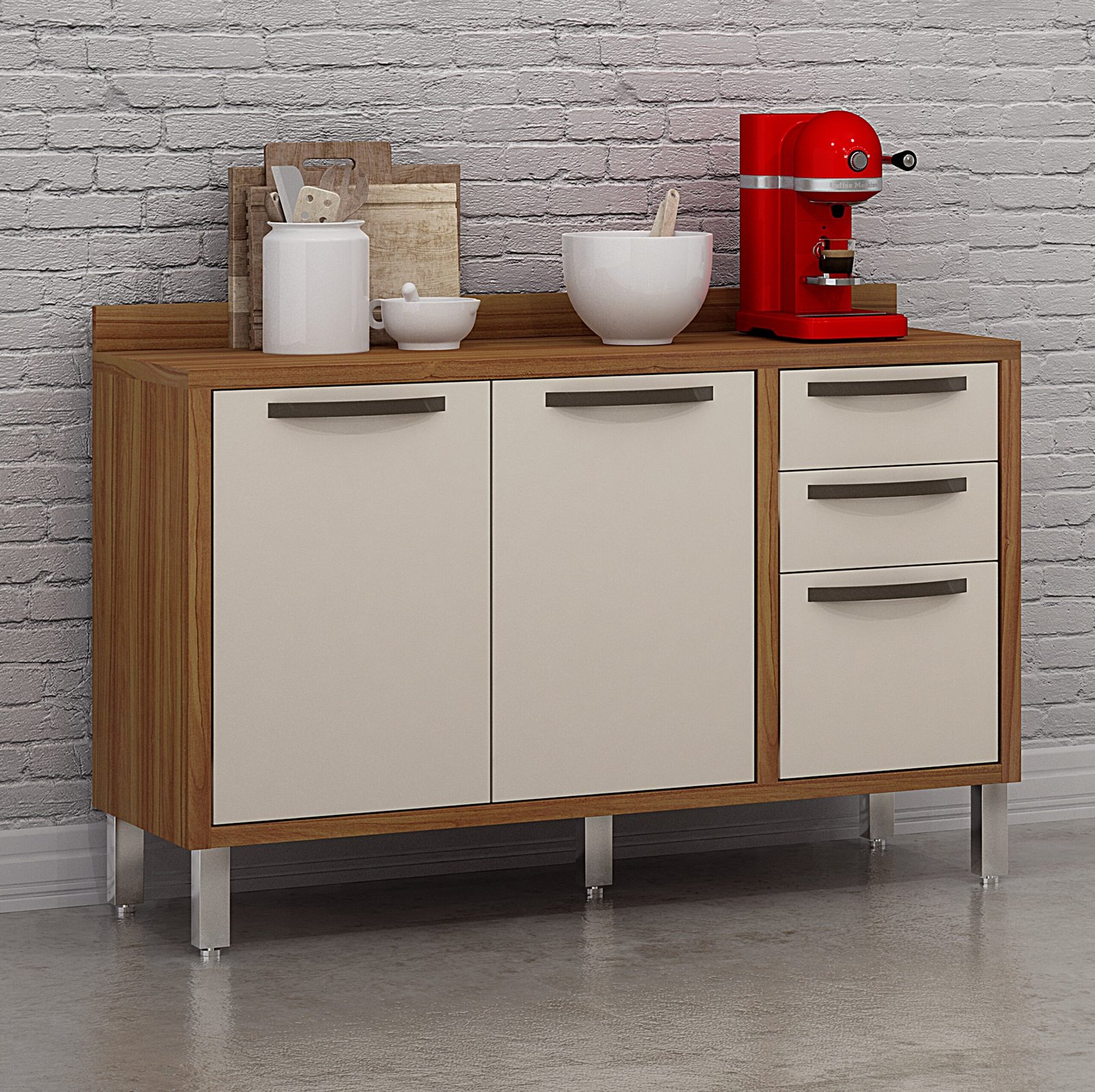 Balcão 2 Portas 3 Gavetas Letícia Carvalho/Off White – CHF