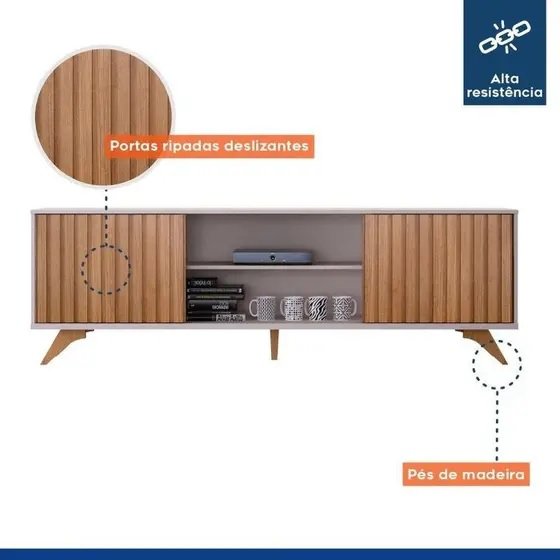 Rack até 65″ Manaus Off White/Cinamono – VALDEMÓVEIS