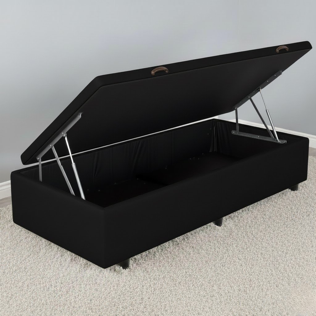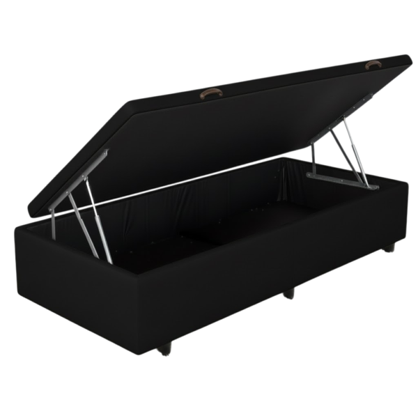 Base Box Solteiro Baú Corino Preto – ALTO NÍVEL CAMAS E COLCHÕES