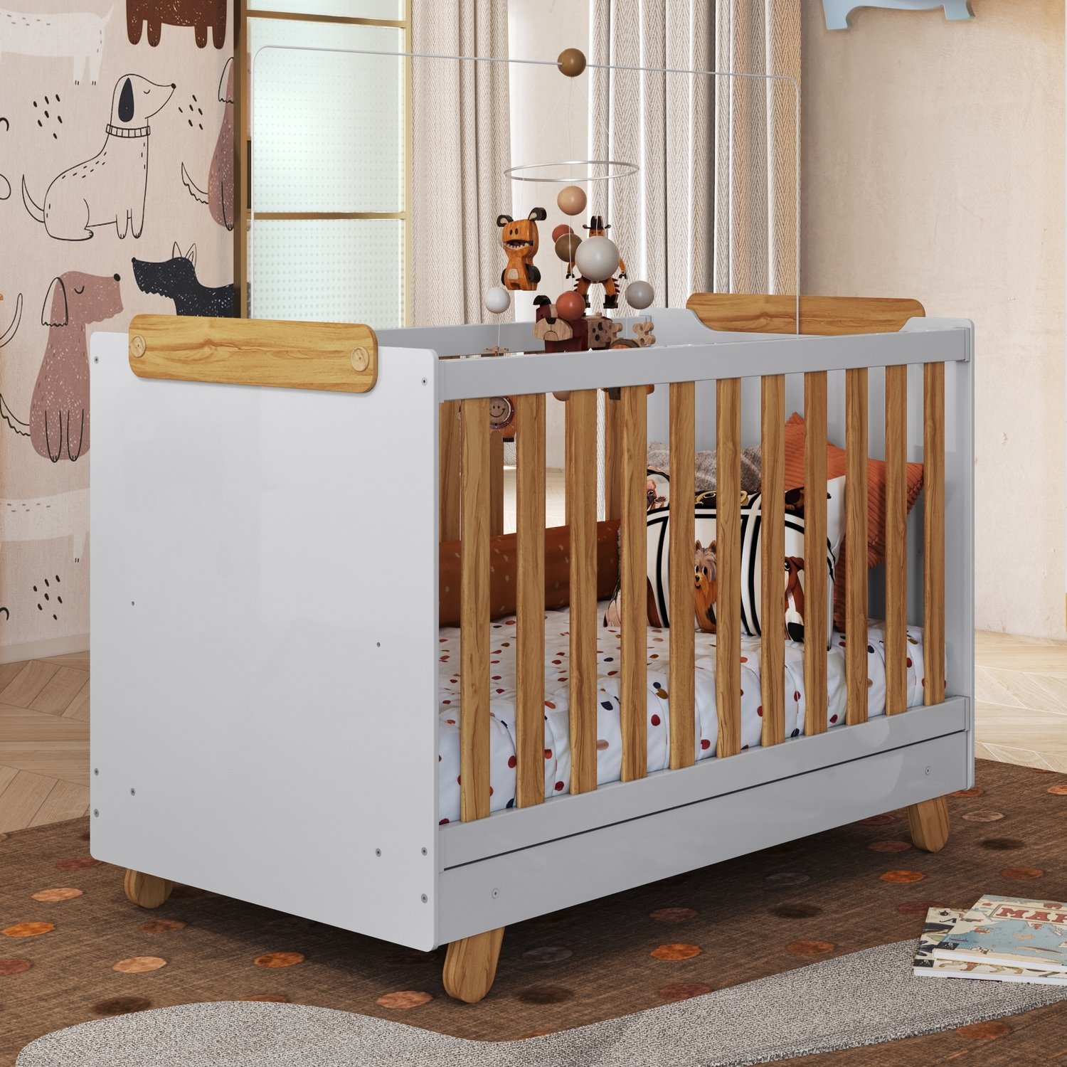 Berço Americano Pingo Branco Brilho/Amêndoa – PEROBA MÓVEIS