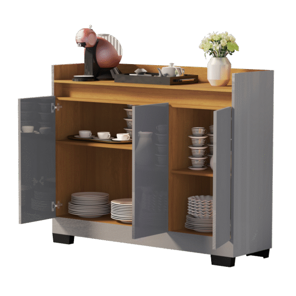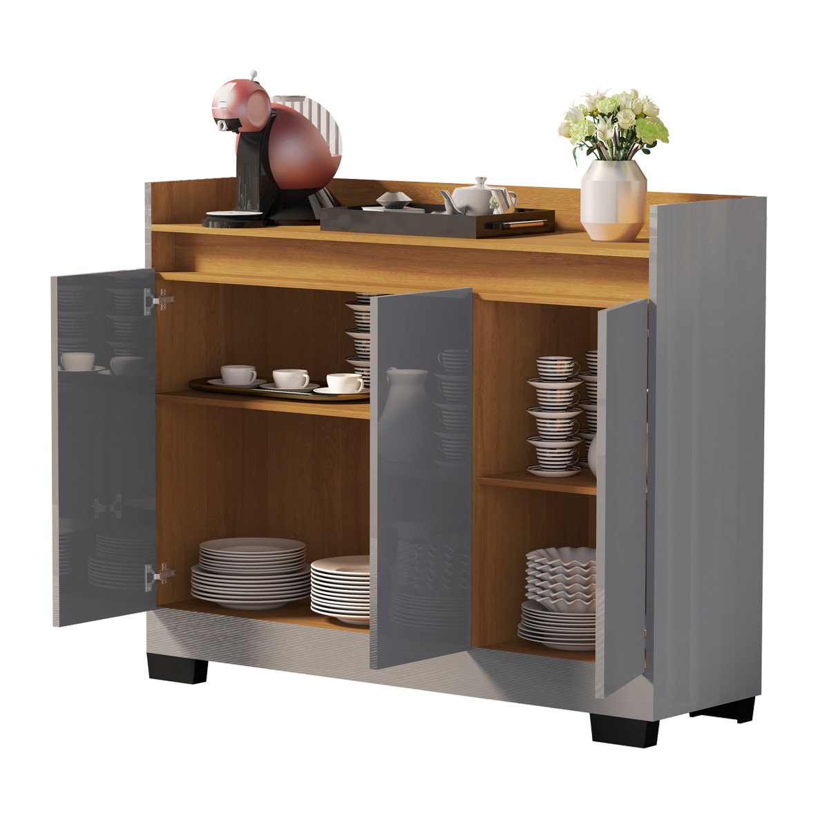 Buffet 3 Portas Real Cinza/Mel – MÓVEIS PRIMUS