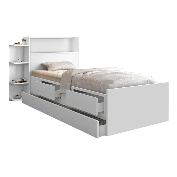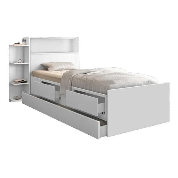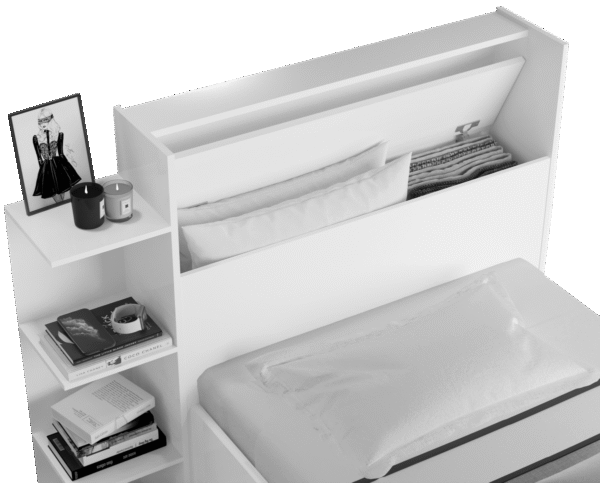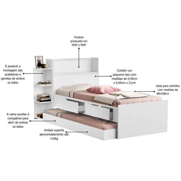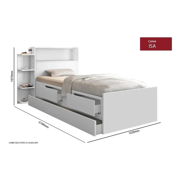 Cama Solteiro Baú Isa + Auxiliar Vitória Branco – VJ MÓVEIS