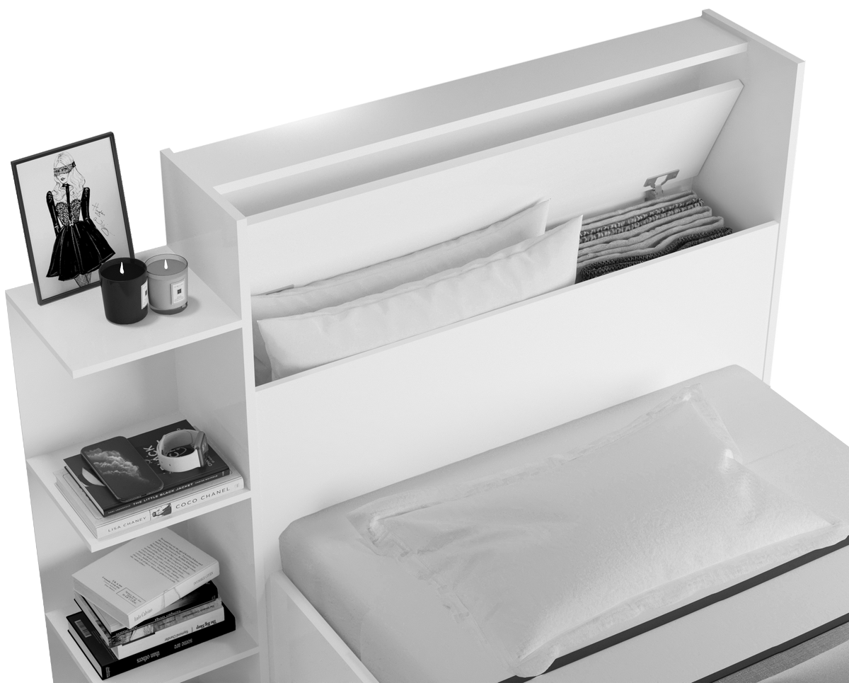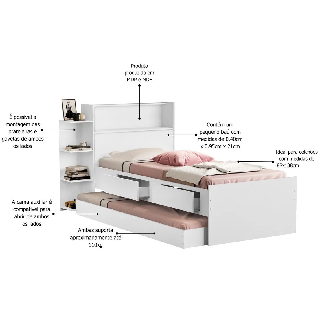 Cama Solteiro Baú Isa + Auxiliar Mili Branco – MADEC/VJ MÓVEIS