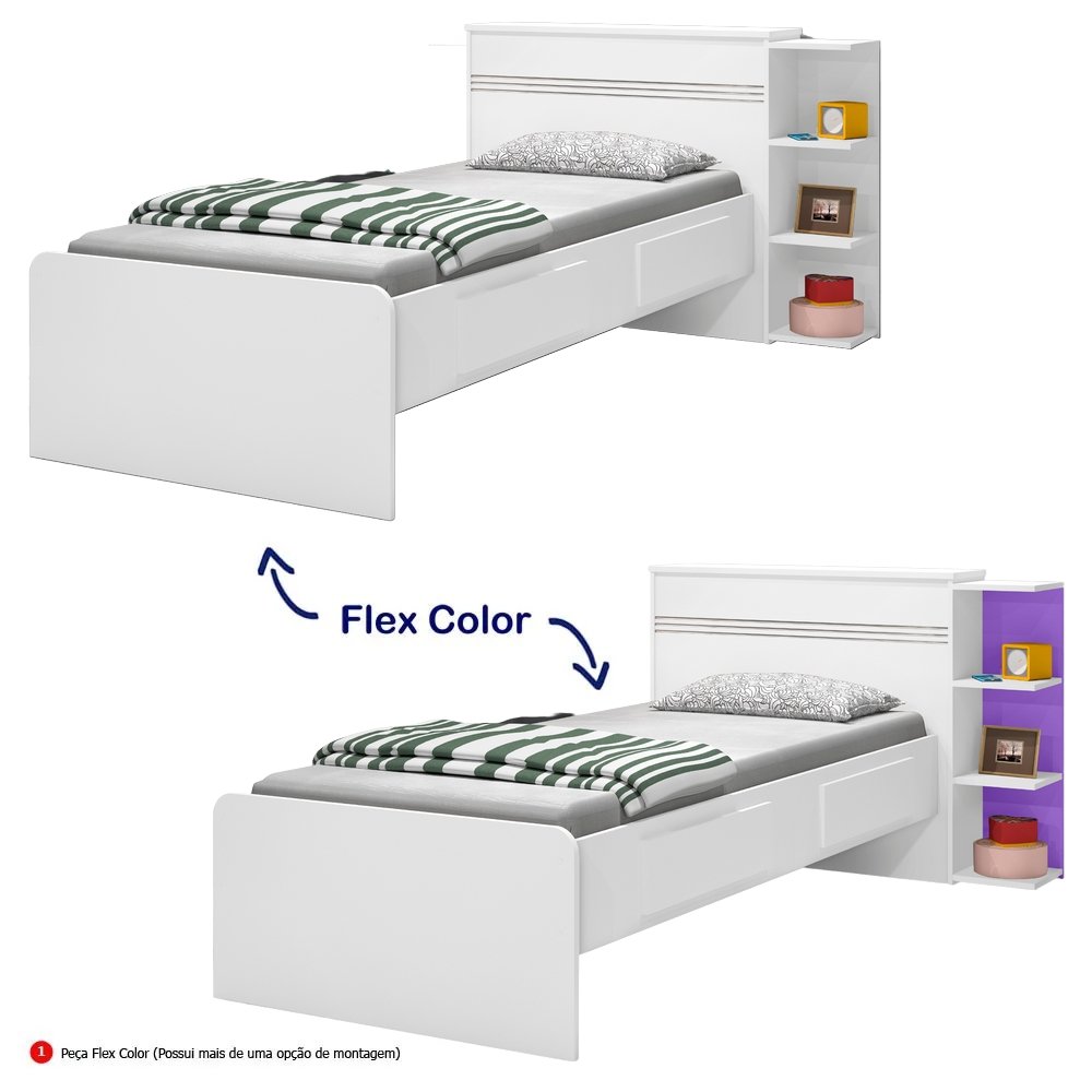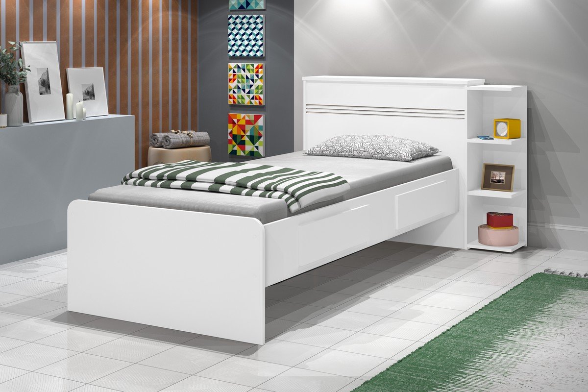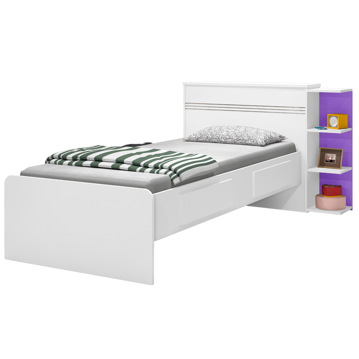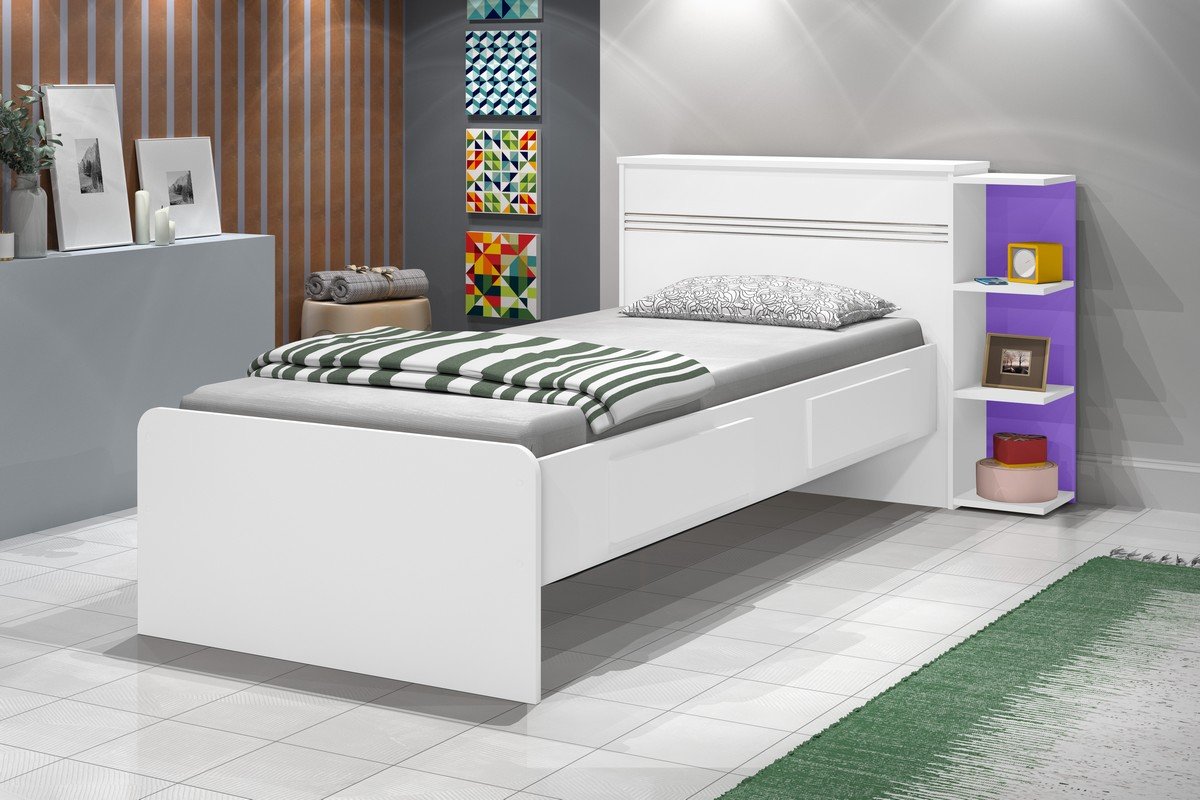 Cama Solteiro Baú Jade Branco/Lilás/Branco – J&A MÓVEIS