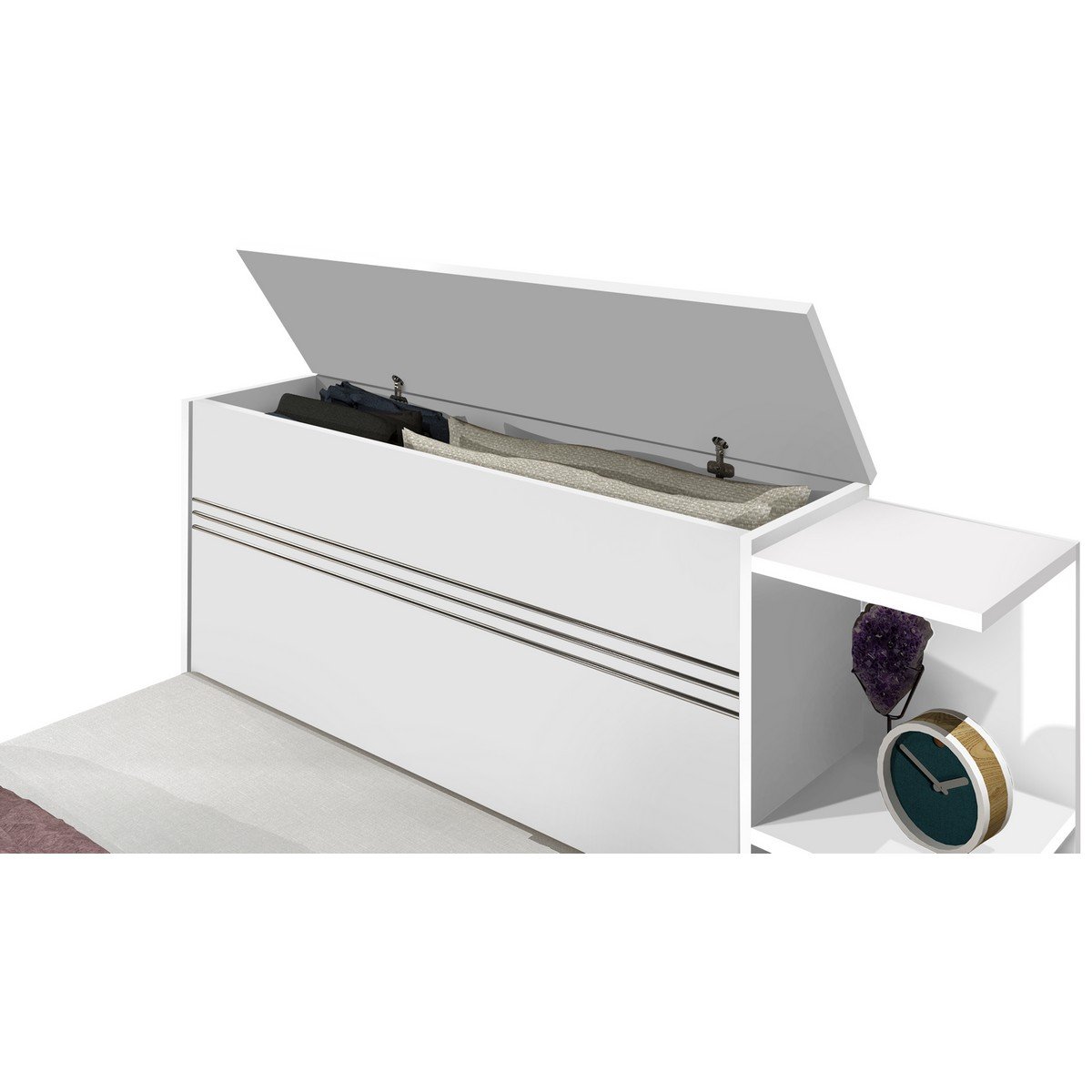 – Baú na cabeceira com tampo de abrir