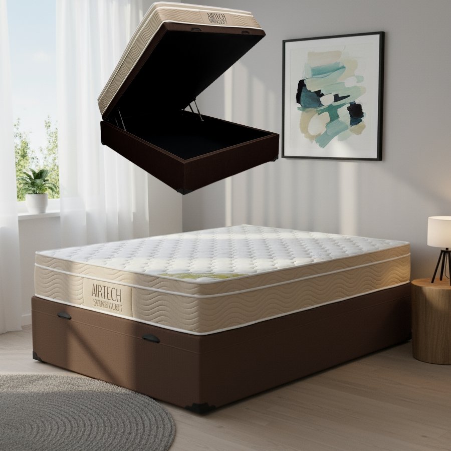 Colchão Casal Airtech Springpocket + Base Box Baú Marrom – ORTOBOM + ALTO NÍVEL CAMAS E COLCHÕES