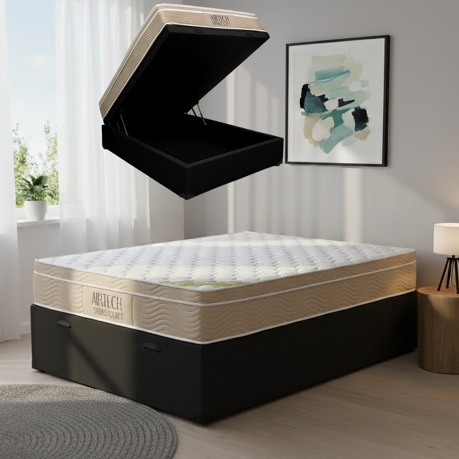 Colchão Casal Airtech Springpocket + Base Box Baú Preto – ORTOBOM + ALTO NÍVEL CAMAS E COLCHÕES