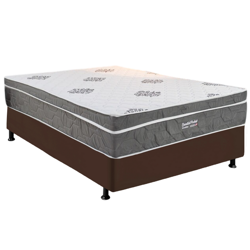 Colchão Casal Essential Pocket D26 + Base Box Simples Corino Marrom – INOVAFLEX + BIOSTAR