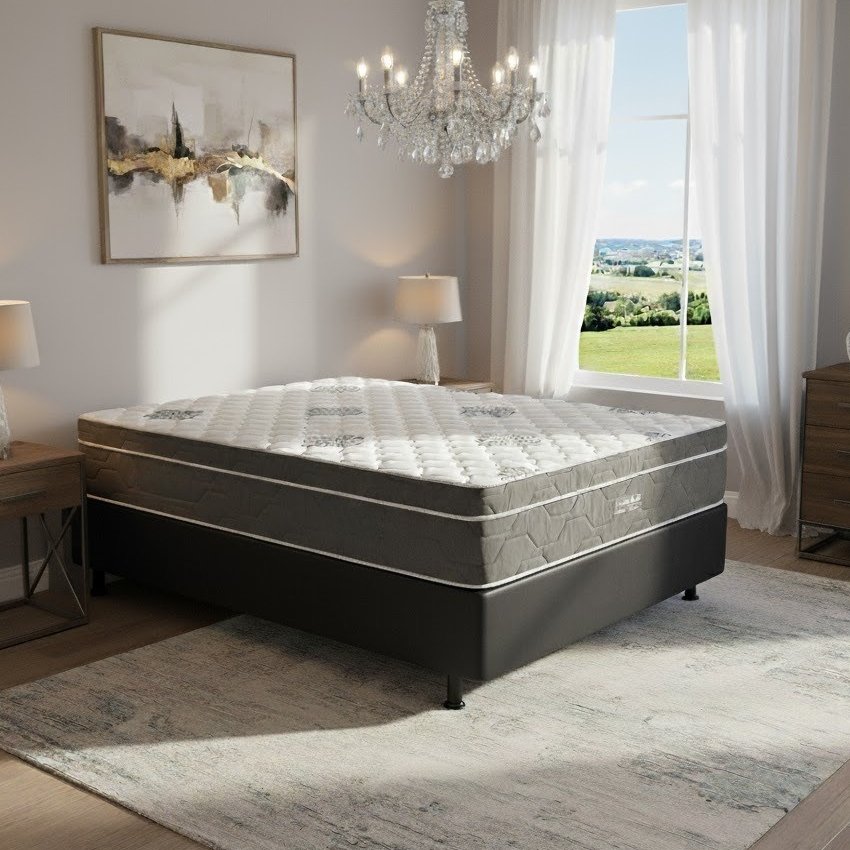 Colchão Casal Essential Pocket D26 + Base Box Simples Corino Preto – INOVAFLEX + BIOSTAR