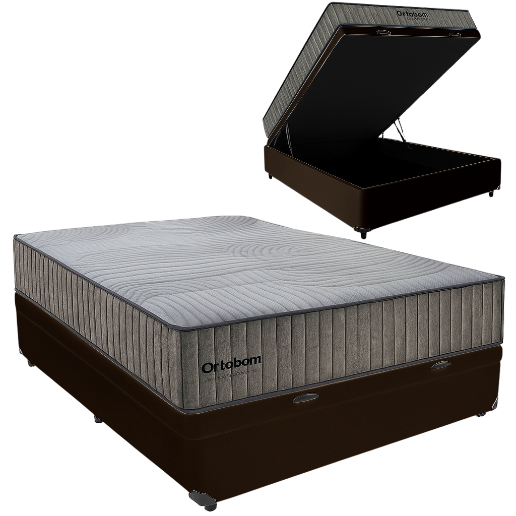 Colchão Casal Exclusive Foam + Base Box Baú Marrom – ORTOBOM + BIOSTAR