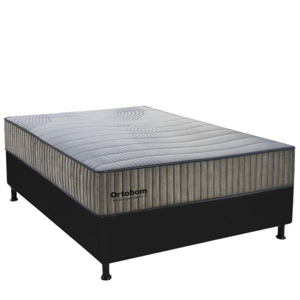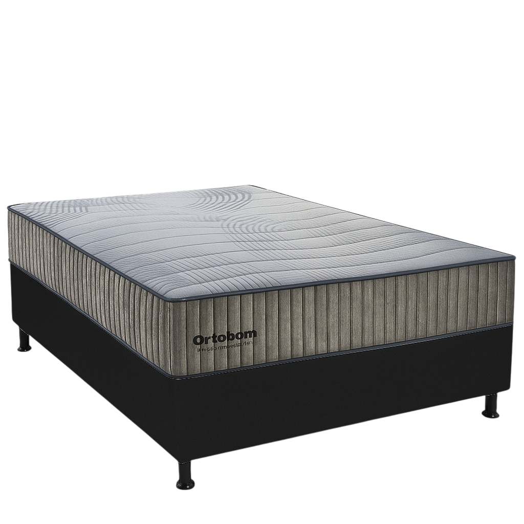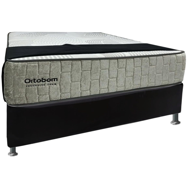Colchão Casal Exclusive Foam HR 33 + Base Box Simples Corino Preto – ORTOBOM + ALTO NÍVEL CAMAS E COLCHÕES
