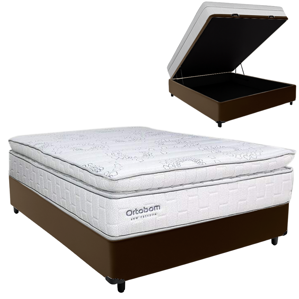 Colchão Casal New Freedom + Base Box Baú Marrom – ORTOBOM + BIOSTAR
