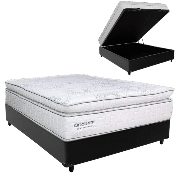 Colchão Casal New Freedom + Base Box Baú Preto – ORTOBOM + BIOSTAR