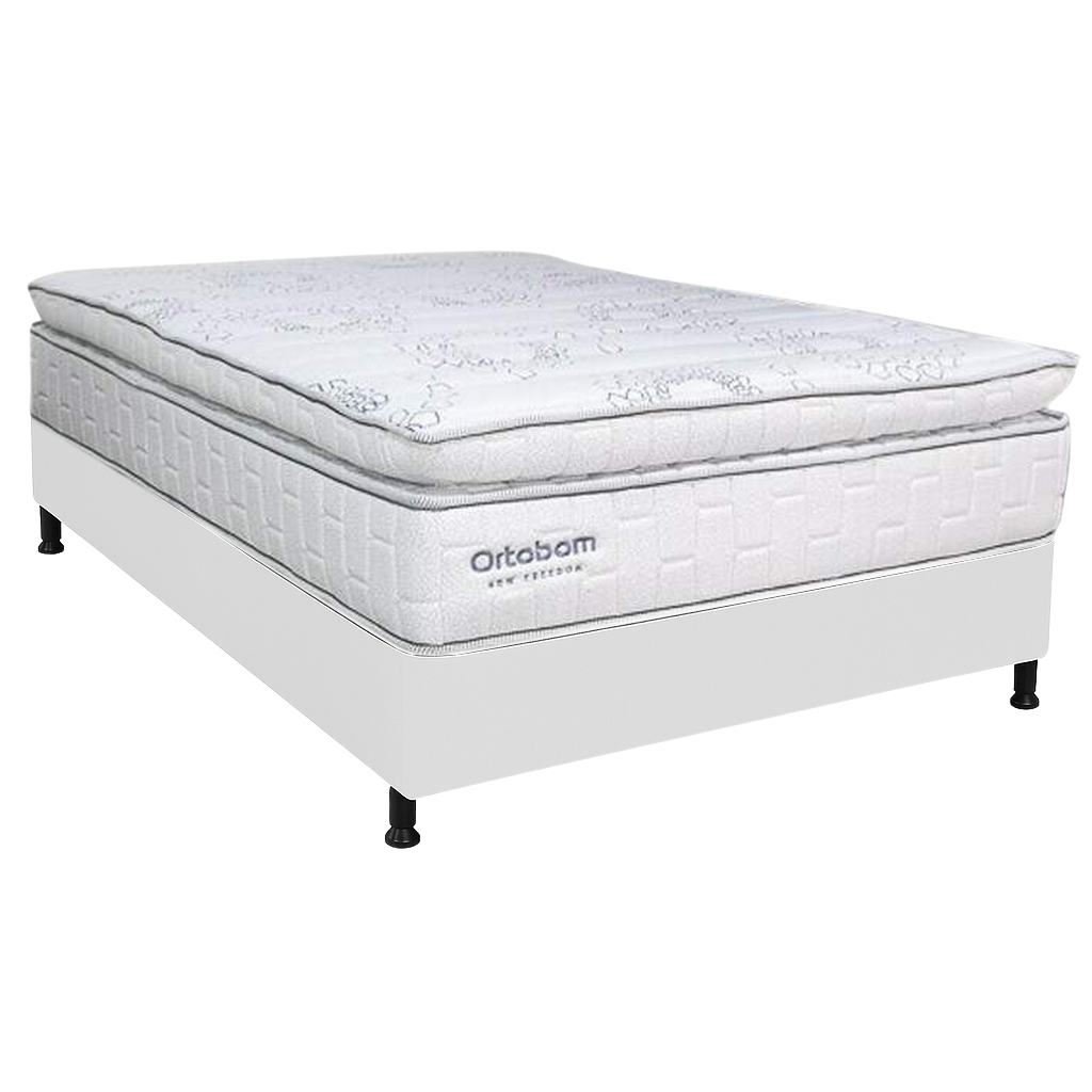 Colchão Casal New Freedom + Base Box Simples Corino Branco – ORTOBOM + ALTO NÍVEL CAMAS E COLCHÕES