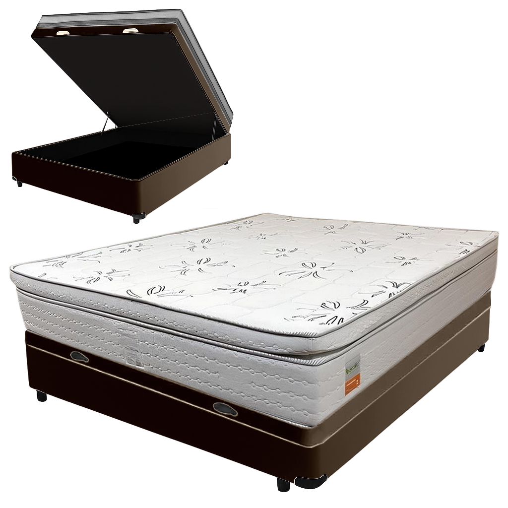 Colchão Casal New York D33 + Base Box Baú Corino Marrom – ECOTEC + BIOSTAR