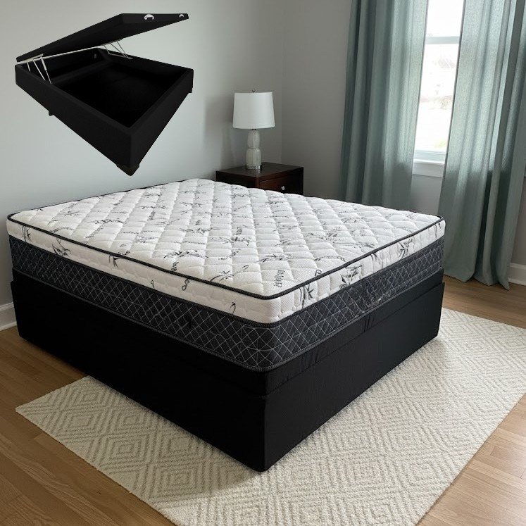 Colchão Casal Prime Light 30 cm D28 Molas Ensacadas + Base Baú Corino Preto – ORTHOPRIME + ALTO NÍVEL