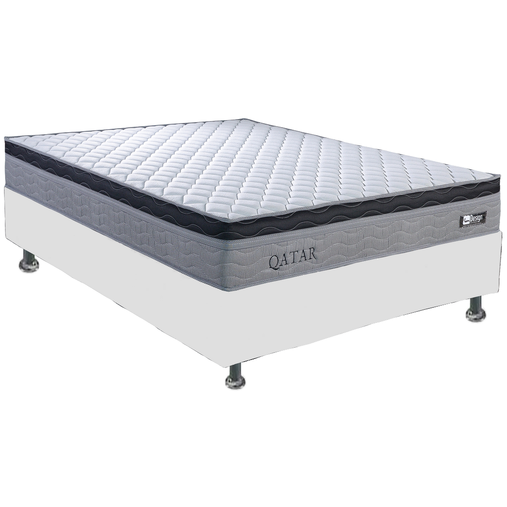 Colchão Casal Qatar D28 + Base Box Simples Corino Branco – DESIGN COLCHÕES + BIOSTAR