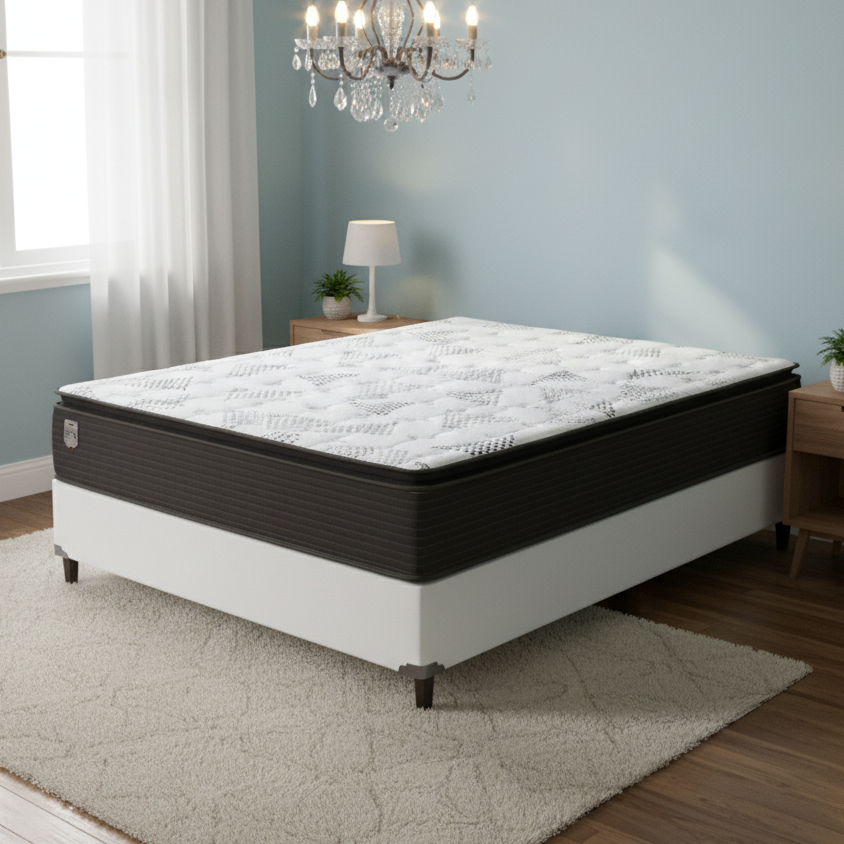 Colchão Casal Ravena D26 + Base Box Casal Simples Corino Branco – UMAFLEX + ALTO NÍVEL CAMAS E COLCHÕES