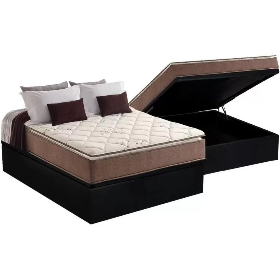 Colchão Casal Star Pillow In + Base Box Baú Corino Preto – ANJOS + BIOSTAR