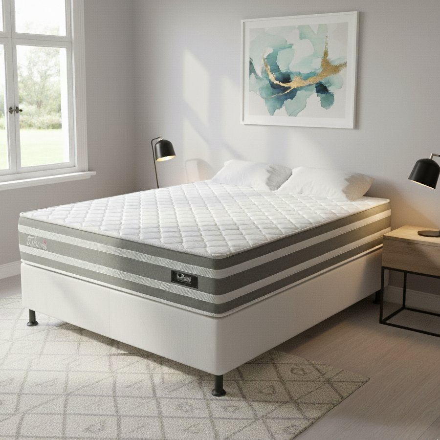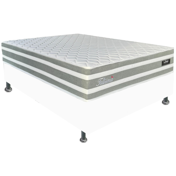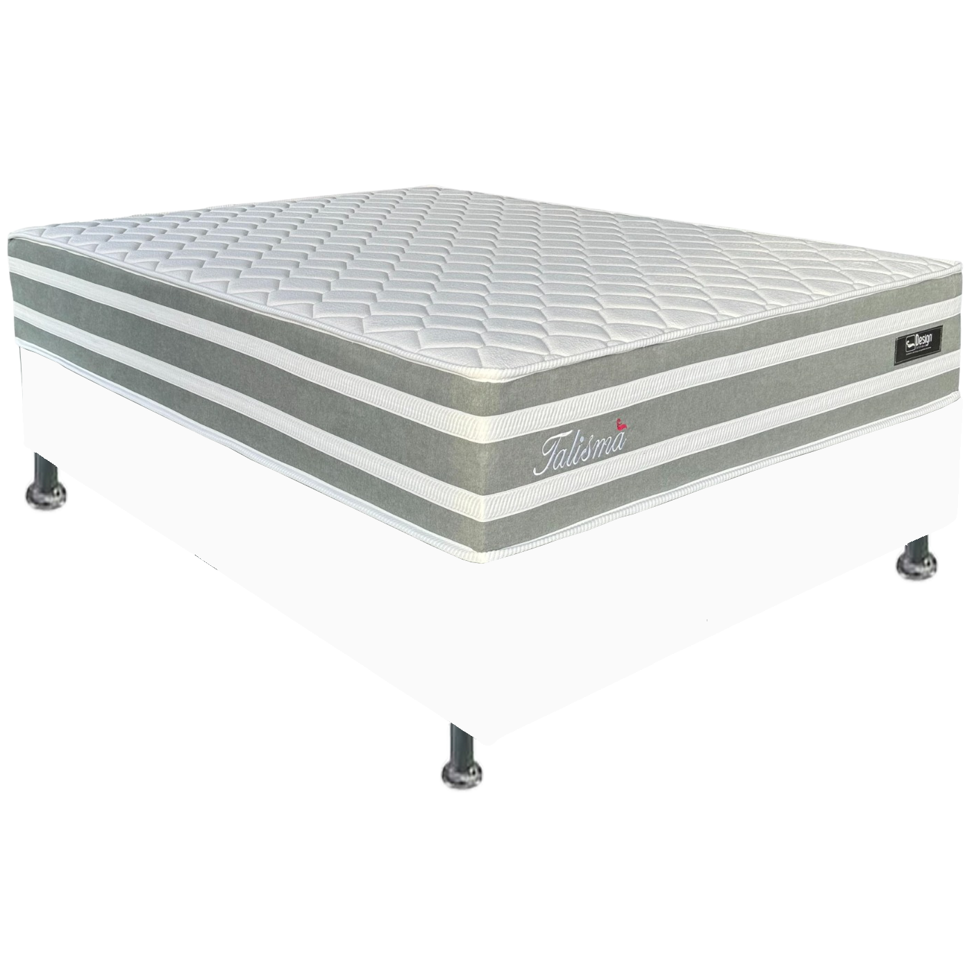 Colchão Casal Talismã D28 + Base Box Simples Corino Branco – DESIGN COLCHÕES + ALTO NÍVEL CAMAS E COLCHÕES