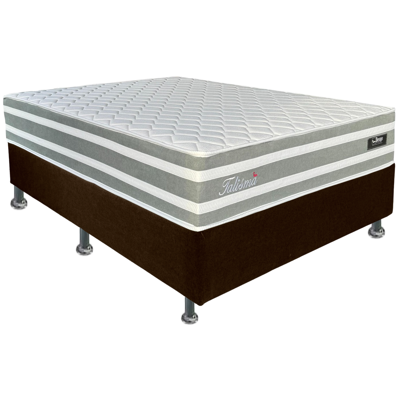 Colchão Casal Talismã D28 + Base Box Simples Corino Marrom – DESIGN COLCHÕES + ALTO NÍVEL CAMAS E COLCHÕES
