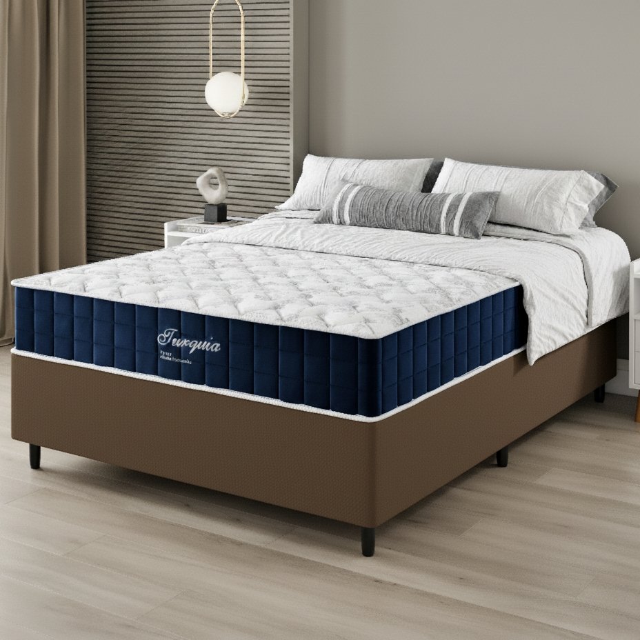 Colchão Casal Turquia 25 cm D28 Molas Ensacadas + Base Simples Corino Marrom – VIERO MÓVEIS + BIOSTAR