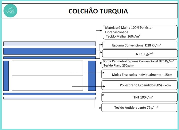 – Tampo matelassê em malha 100% poliéster e fibra siliconada