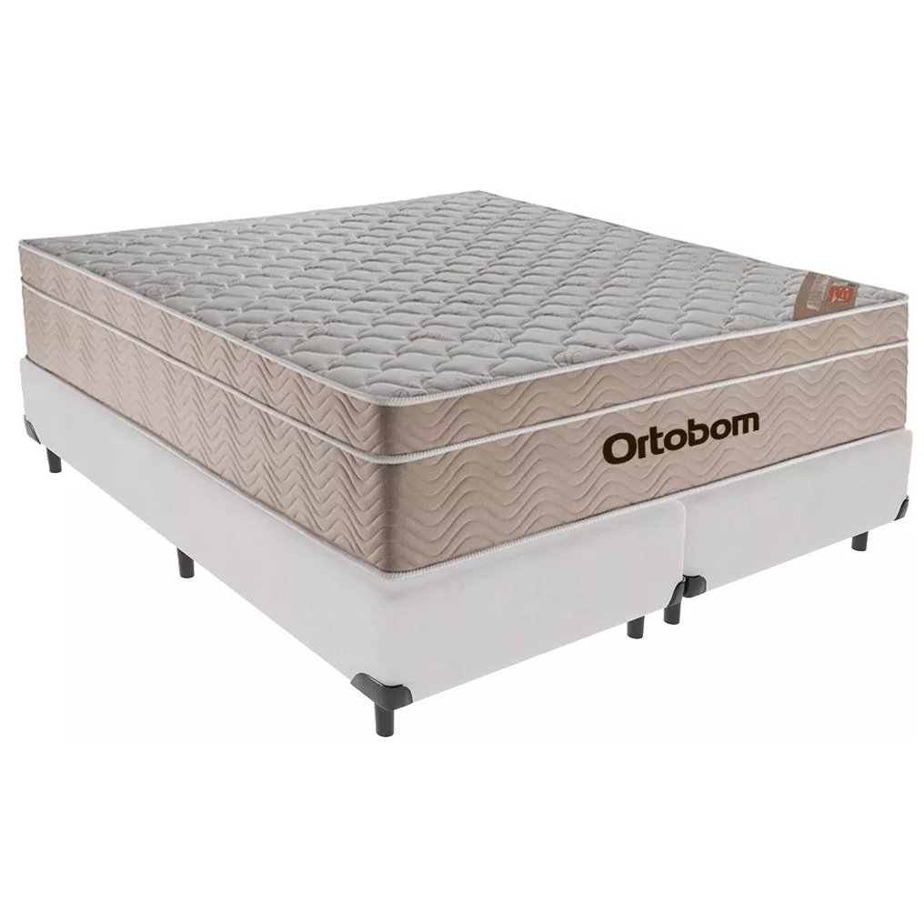 Colchão Queen Airtech Springpocket + Base Box Simples Corino Branco – ORTOBOM + BIOSTAR