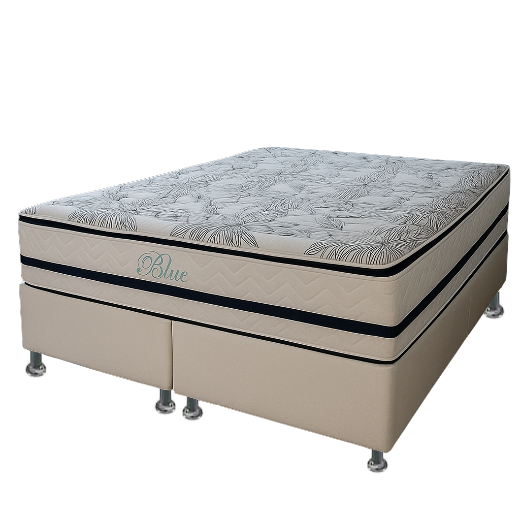 Colchão Queen Blue + Base Box Simples Branco – PAROPAS + BIOSTAR