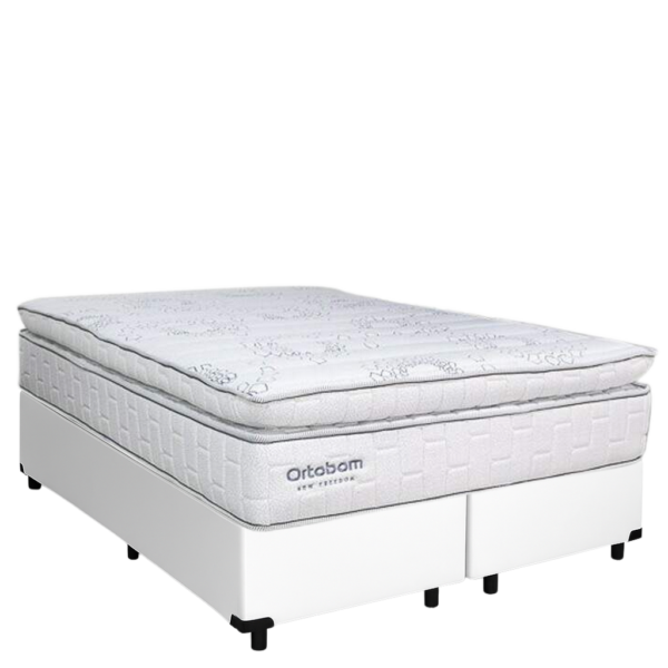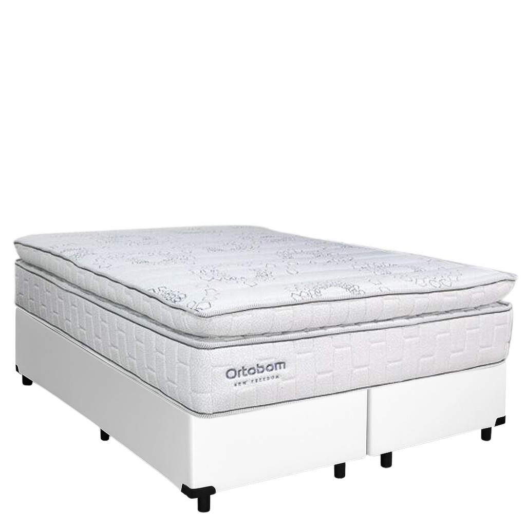 Colchão Queen New Freedom + Base Box Simples Corino Branco – ORTOBOM + ALTO NÍVEL CAMAS E COLCHÕES