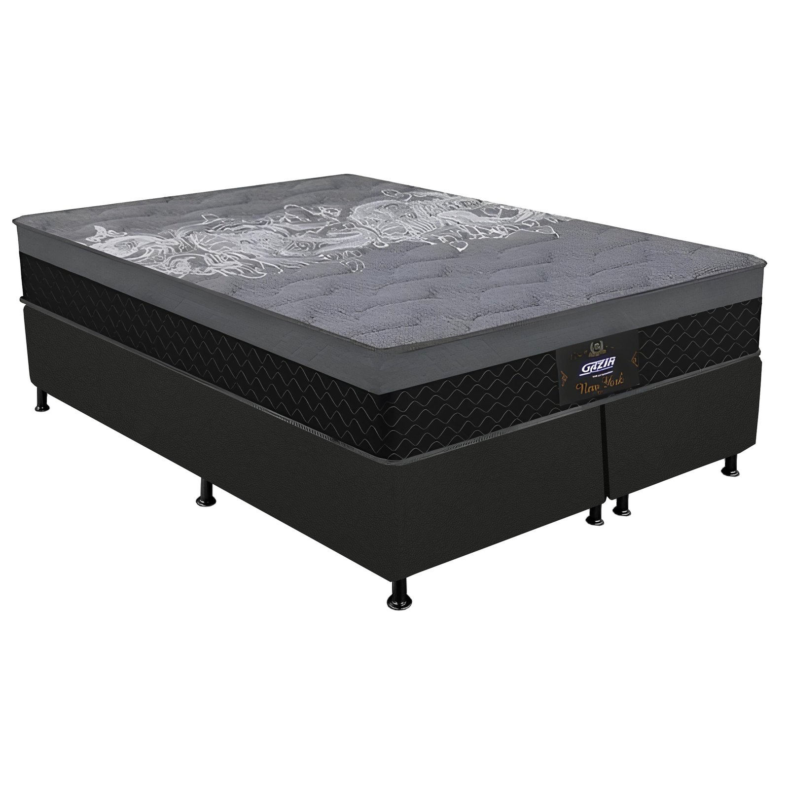 Colchão Queen New York + Base Box Simples Corino Preto – GAZIN + ALTO NÍVEL