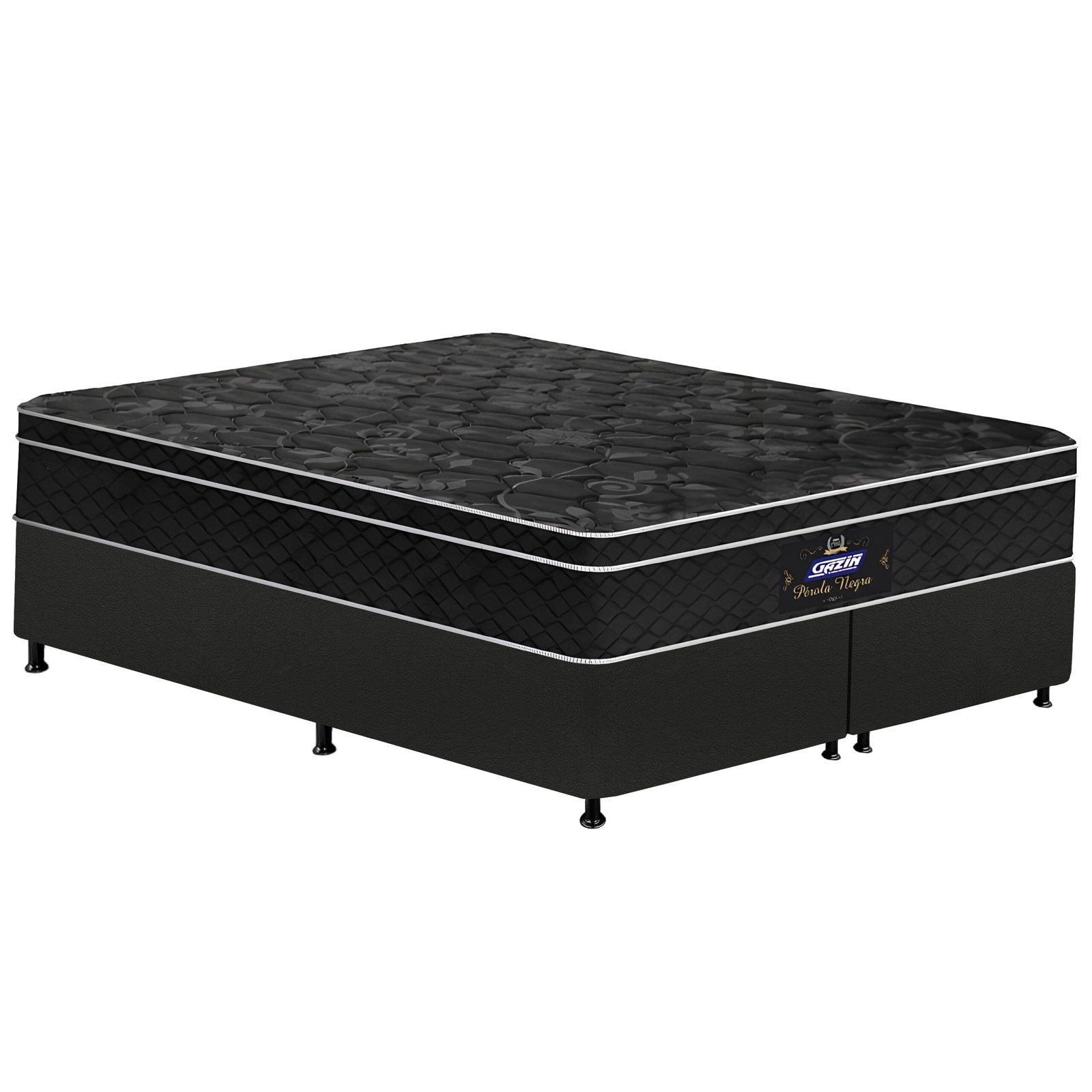 Colchão Queen Pérola Negra D33 + Base Box Simples Corino Preto – GAZIN COLCHÕES + ALTO NÍVEL CAMAS E COLCHÕES