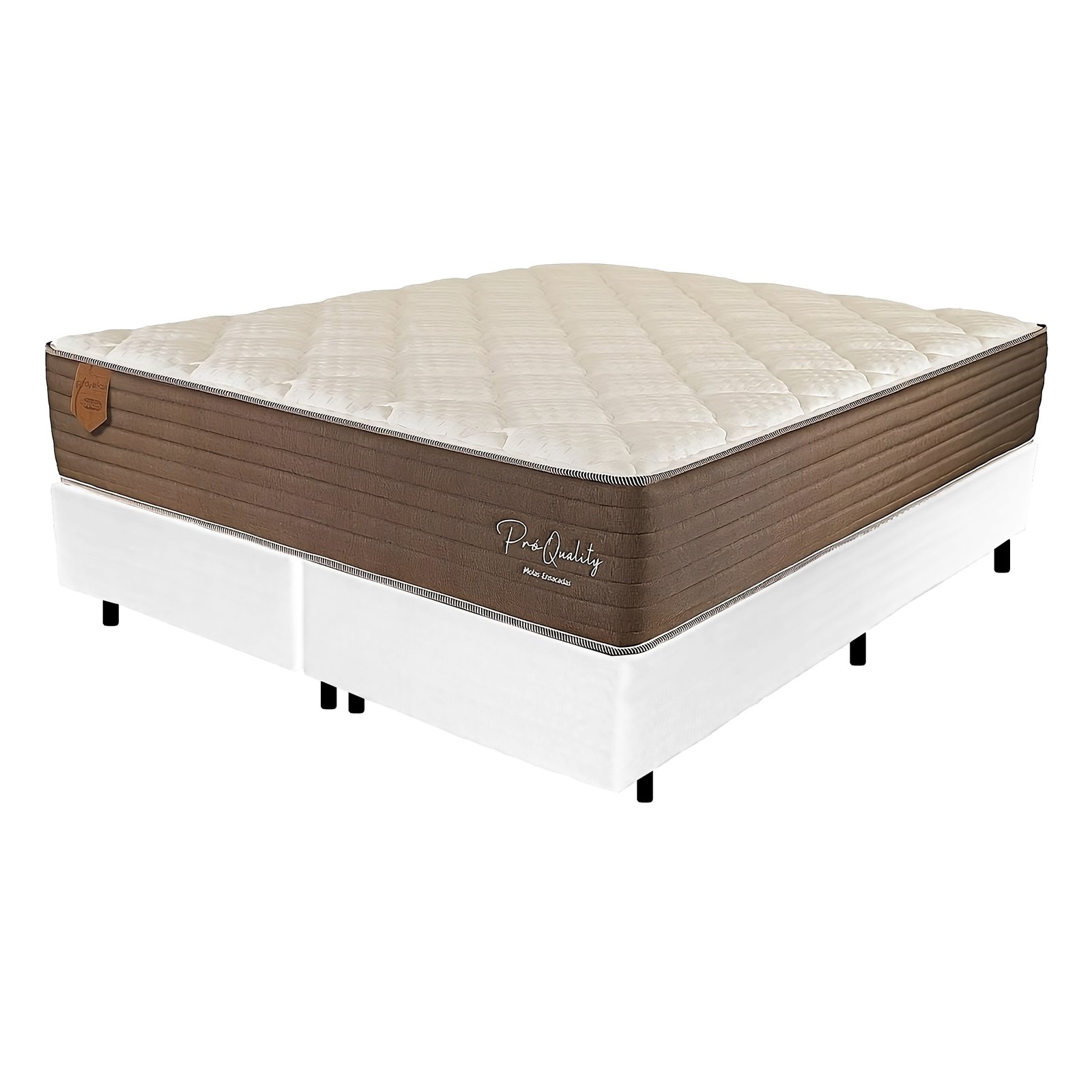 Colchão Queen Pro Quality C D28 + Base Box Simples Corino Branco – PRORELAX + ALTO NÍVEL CAMAS E COLCHÕES