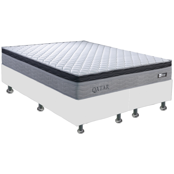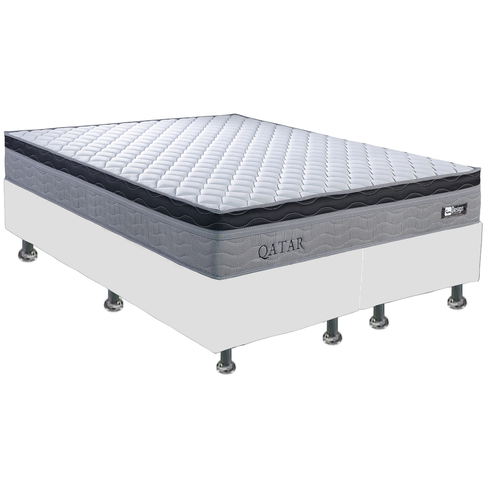 Colchão Queen Qatar D28 + Base Box Simples Corino Branco – DESIGN COLCHÕES + BIOSTAR