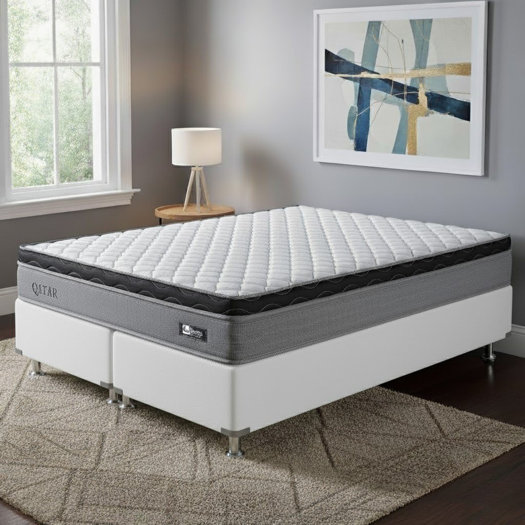 Colchão Queen Qatar 26 cm D28 Molas ensacadas + Base Simples Corino Branco – DESIGN COLCHÕES + BIOSTAR