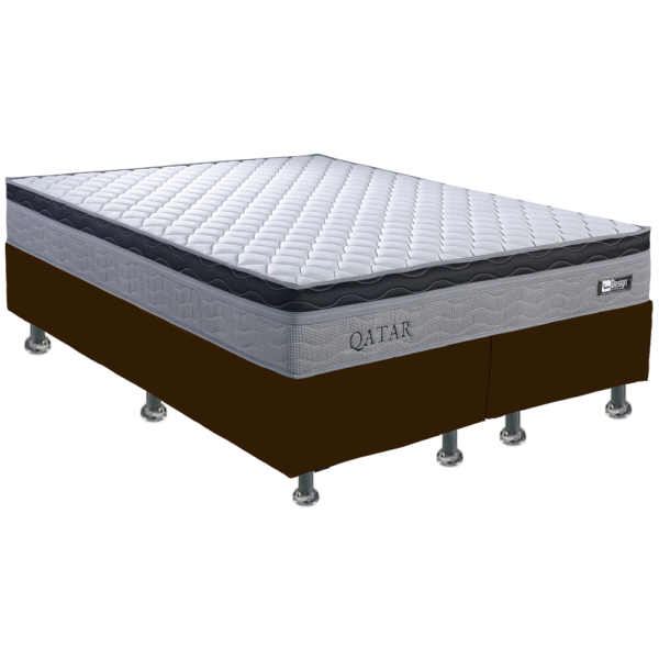 Colchão Queen Qatar D28 + Base Box Simples Corino Marrom – DESIGN COLCHÕES + BIOSTAR