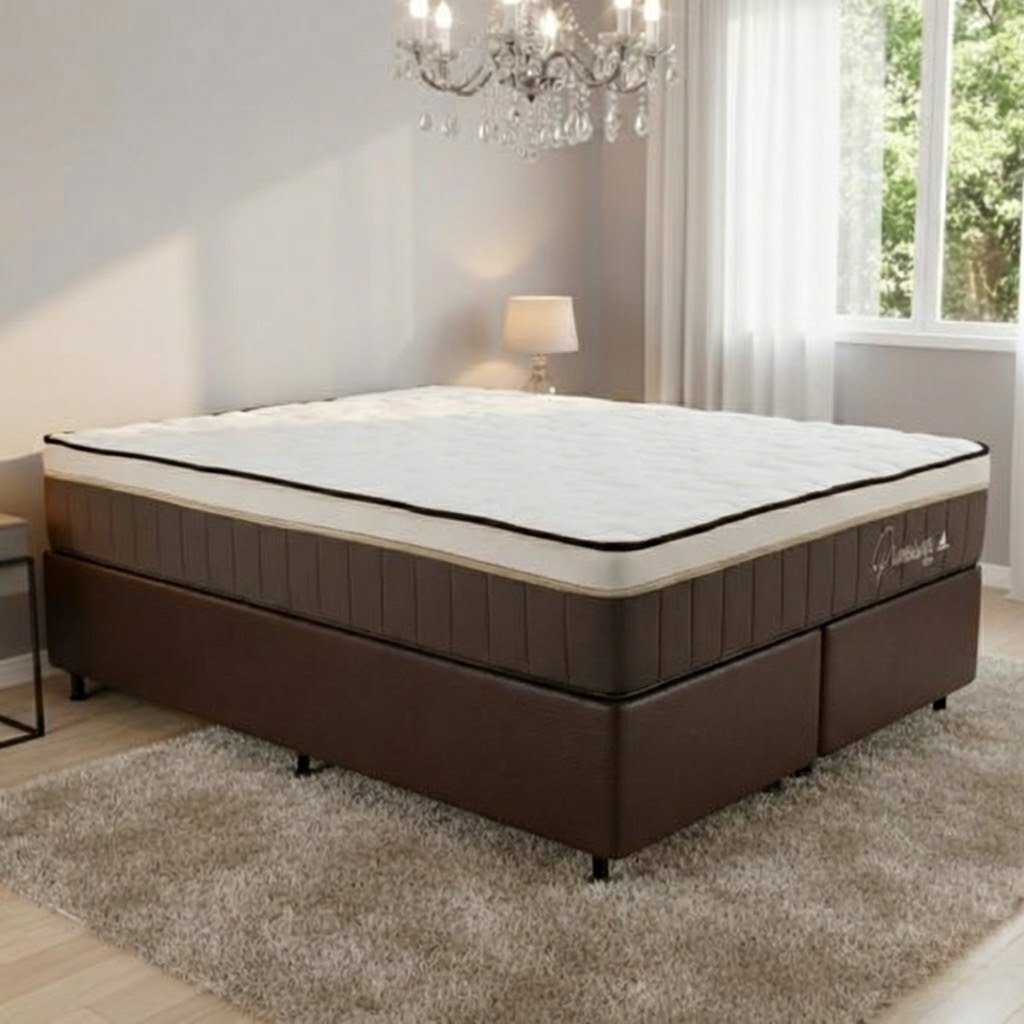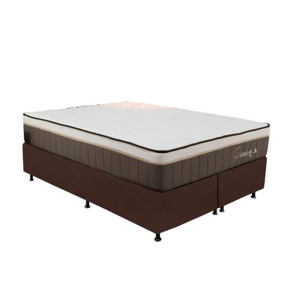 Colchão Queen Rondopremium Plus + Base Box Simples Corino Marrom – RONDOMÓVEIS + ALTO NÍVEL CAMAS E COLCHÕES