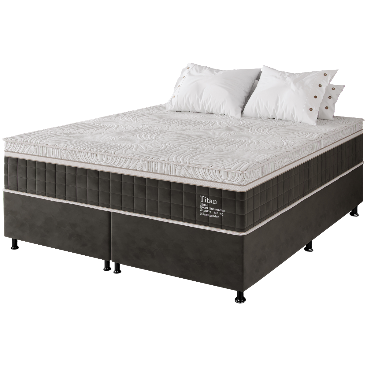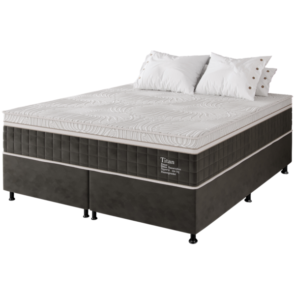 Colchão Queen Terapêutico Massageador Titan D28 + Base Box Simples Corino Preto – VIERO MÓVEIS + BIOSTAR