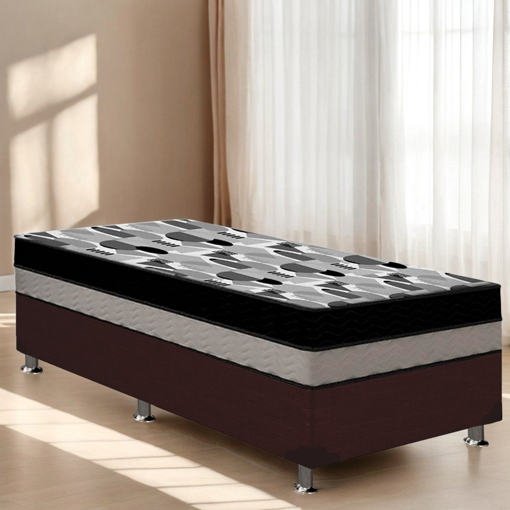 Colchão Solteiro ISO Dupla Face + Base Box Simples Corino Marrom – ORTOBOM + ALTO NÍVEL CAMAS E COLCHÕES