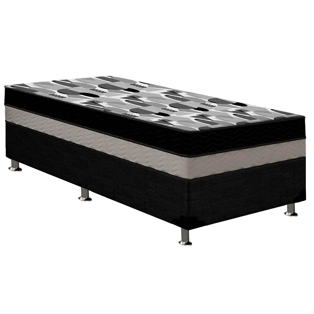 Colchão Solteiro ISO Dupla Face + Base Box Simples Corino Preto – ORTOBOM + ALTO NÍVEL CAMAS E COLCHÕES