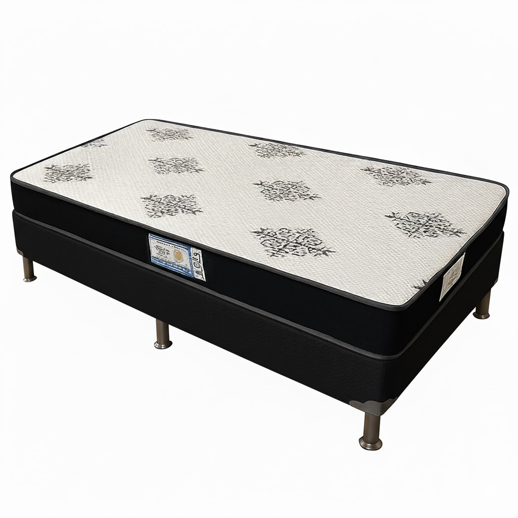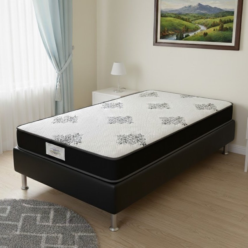 Colchão Solteiro 12 cm Light D20 + Base Box Simples Corino Preto – ECOTEC + ALTO NÍVEL CAMAS E COLCHÕES