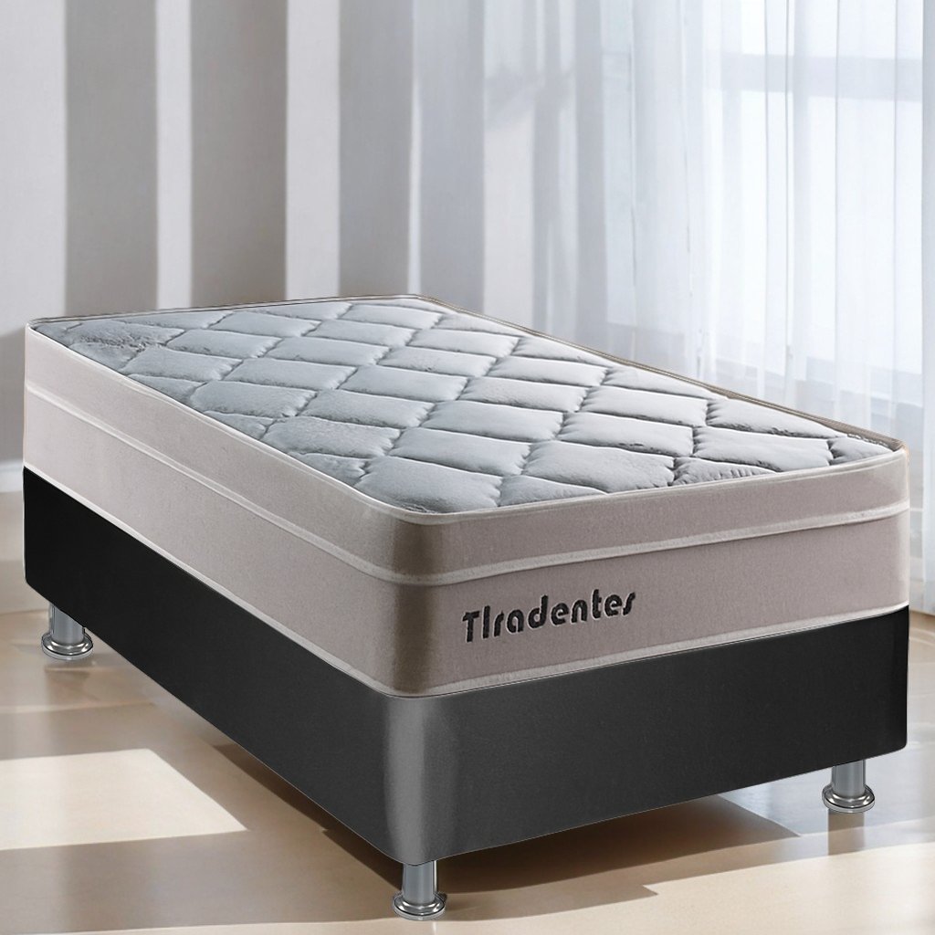 Colchão Solteiro Tiradentes D28 + Base Box Simples Corino Preto – COLCHOMINAS + BIOSTAR