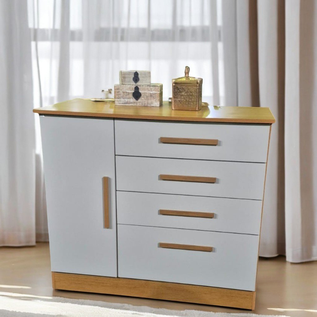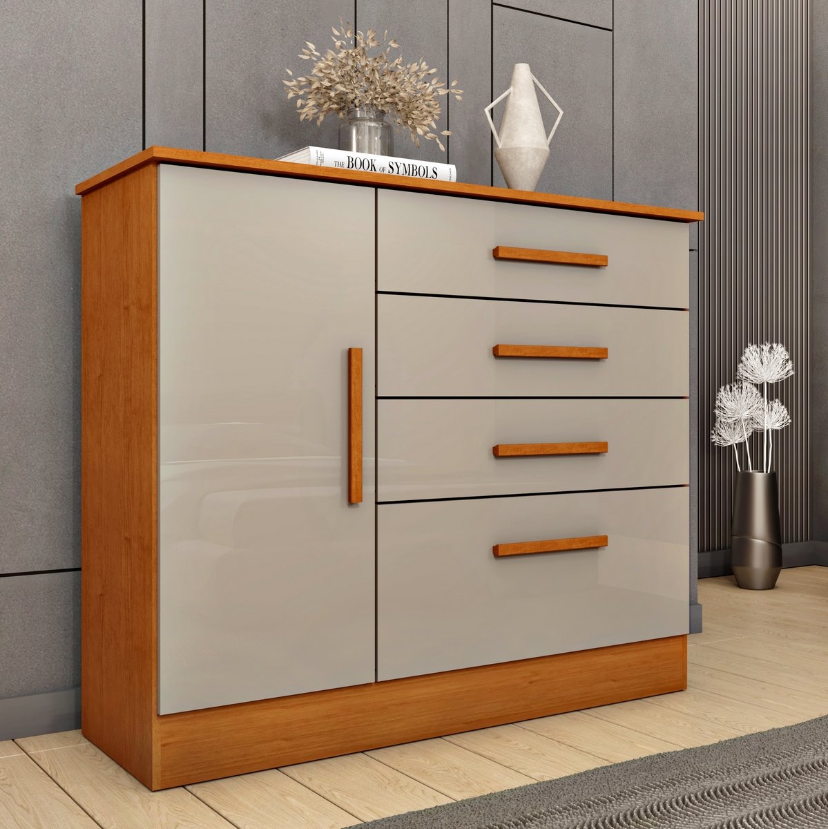 Cômoda 4 Gavetas com Sapateira Chicago/Berlim Cinamono/Off White – TCIL