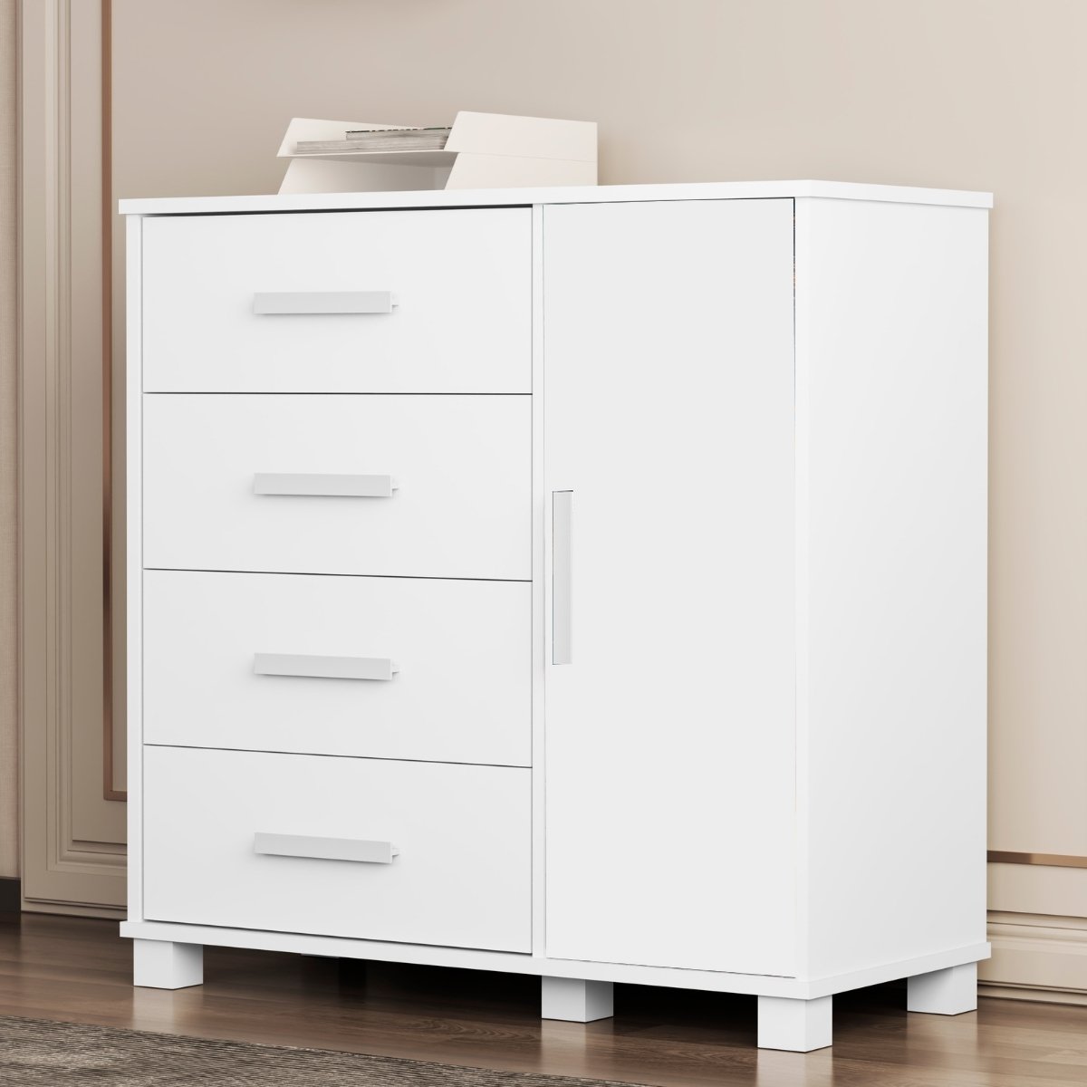 Cômoda 4 Gavetas com Sapateira Lívia Branco(Sem adesivo) – MADEC/VJ MÓVEIS