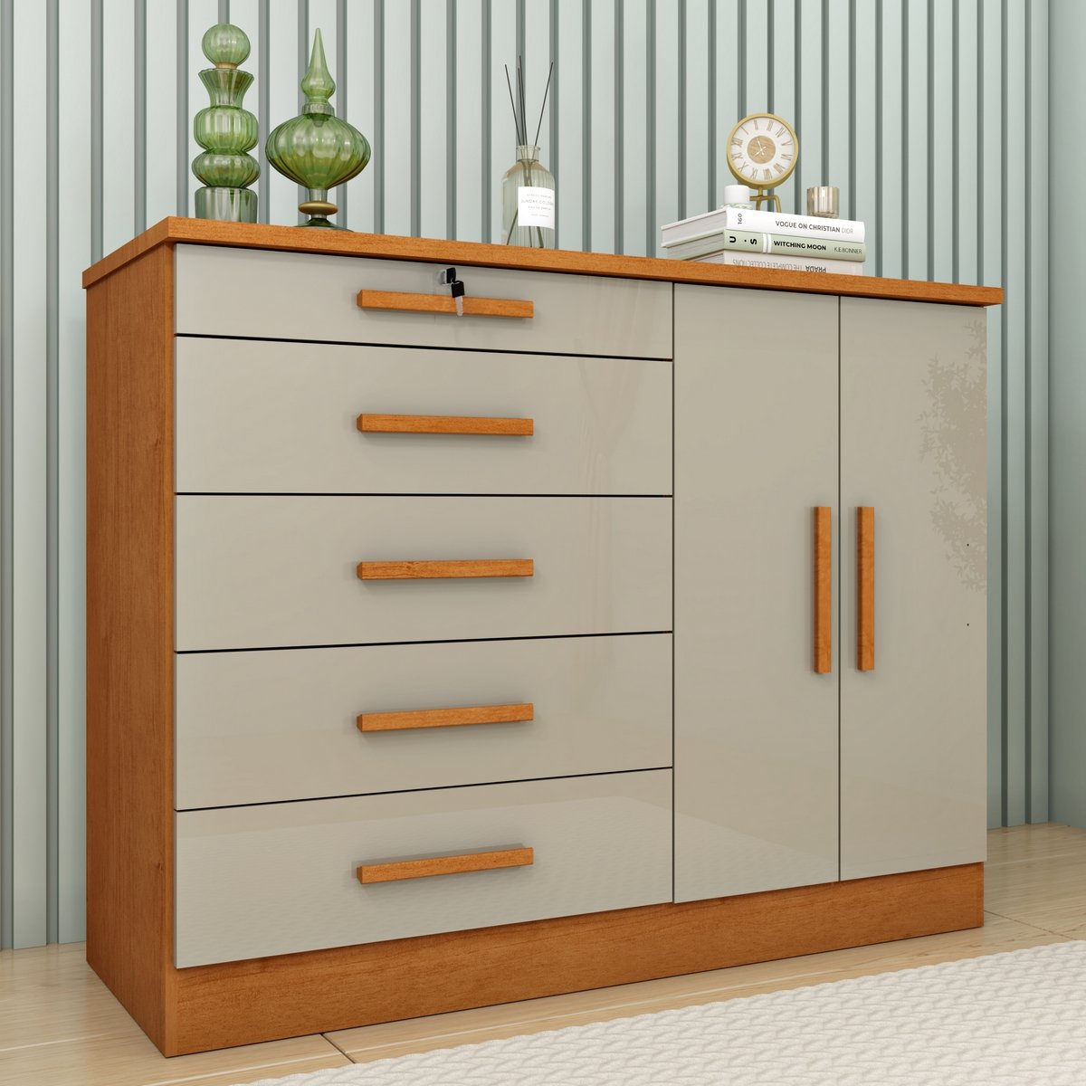 Cômoda 5 Gavetas Sapateira Dupla Istambul Cinamono/Off White – TCIL