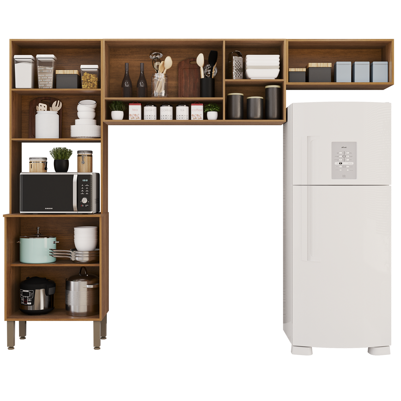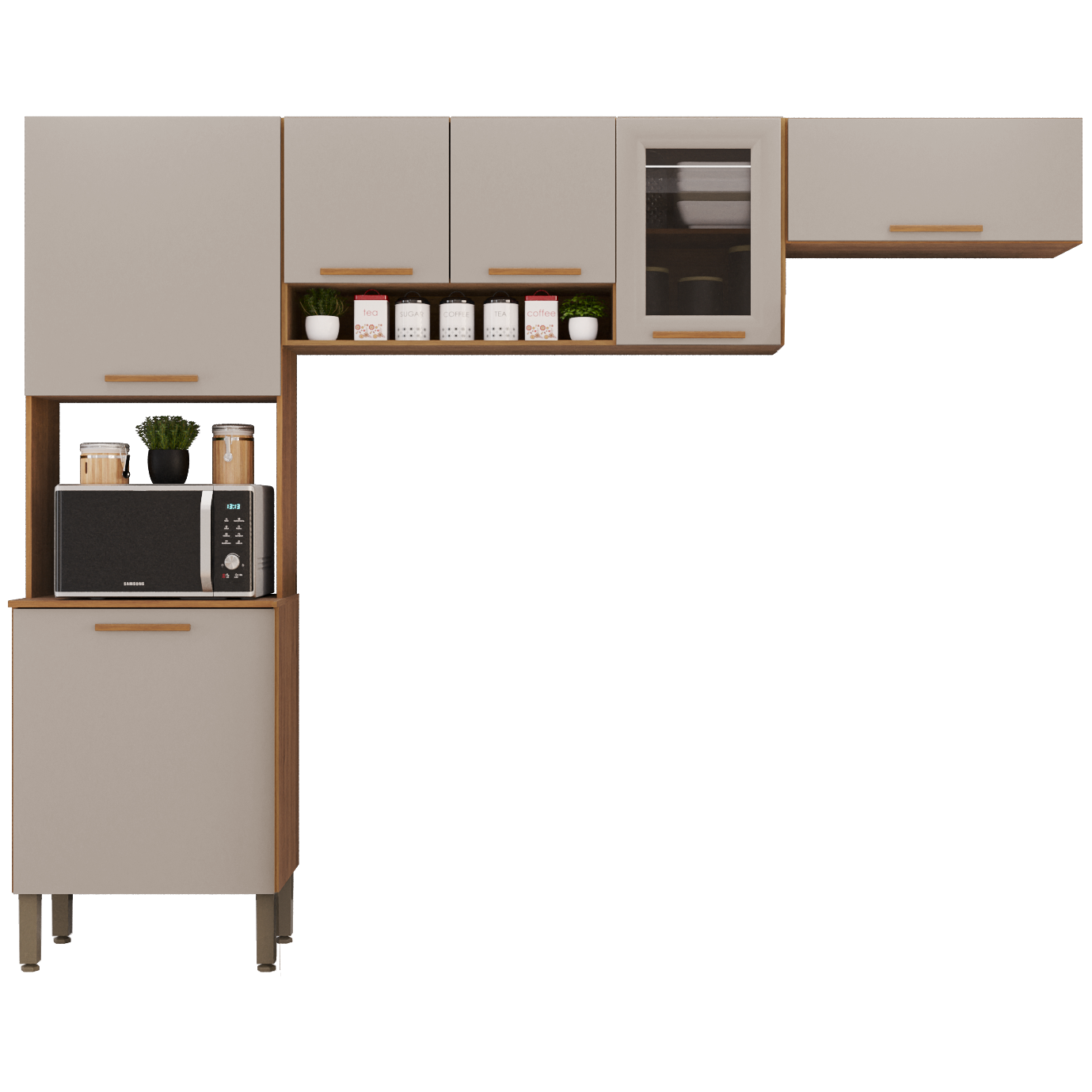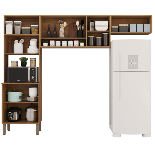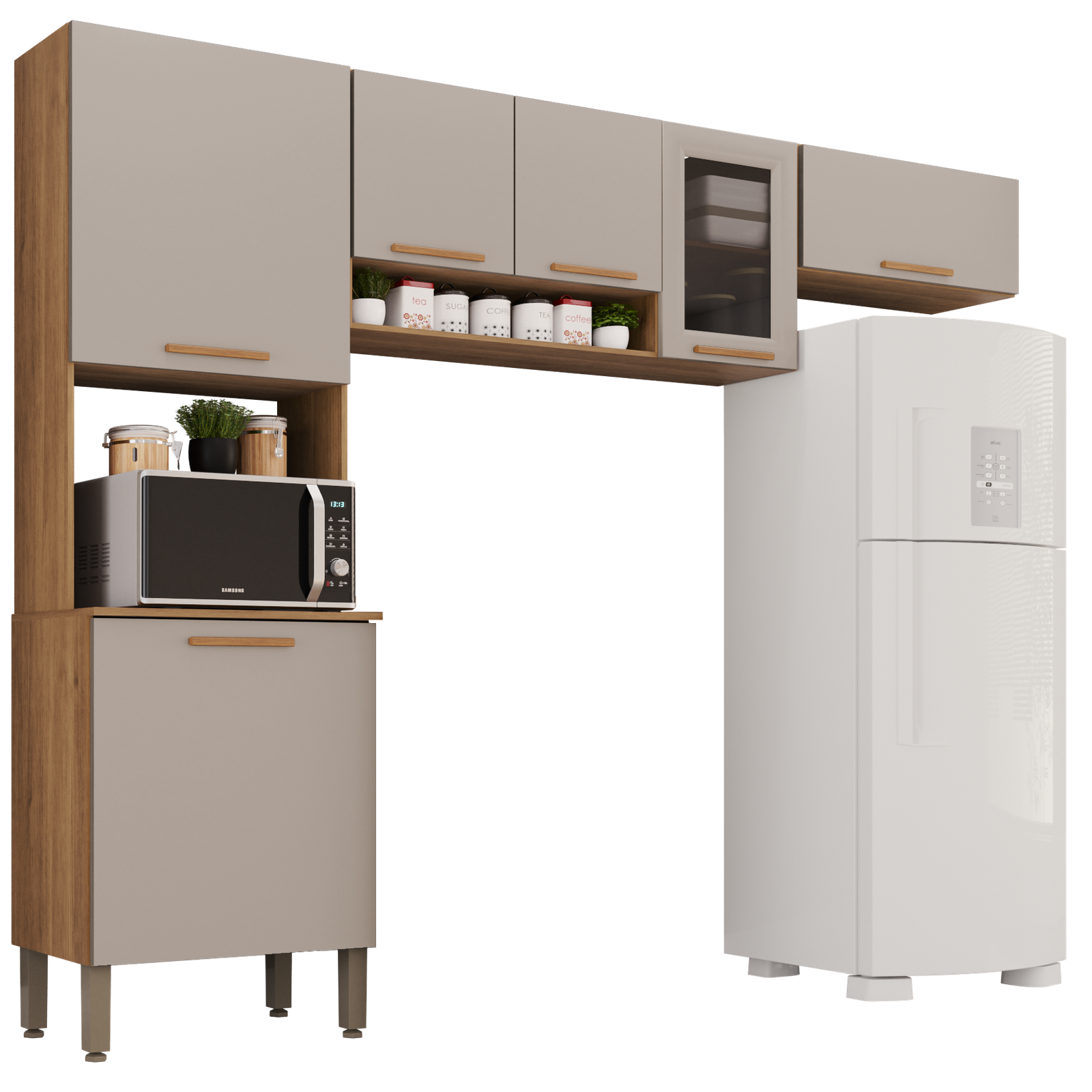 Cozinha 3 Peças (S/Balcão) New Valência (Vidro Fumê) Cinamomo/Off White – SALLÊTO