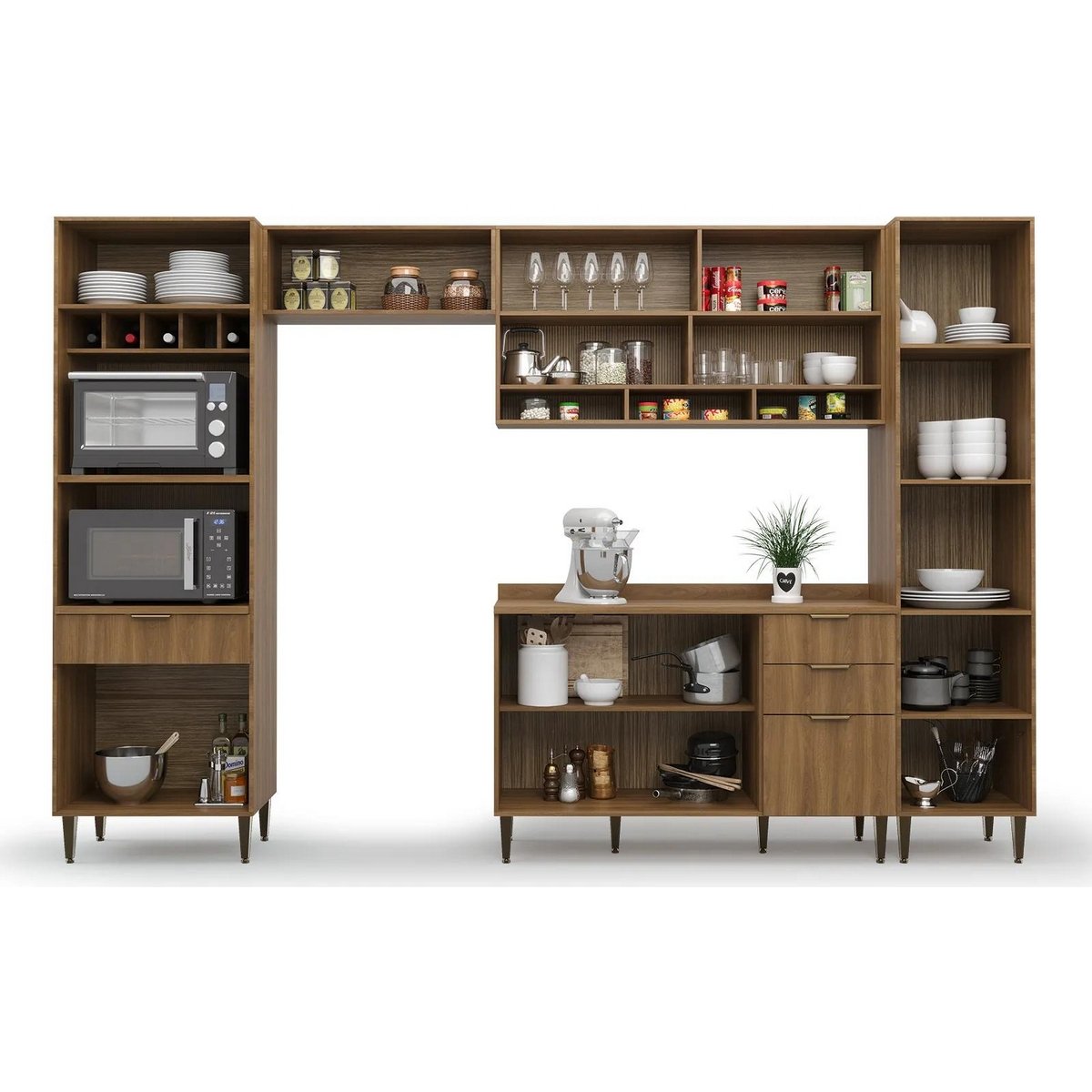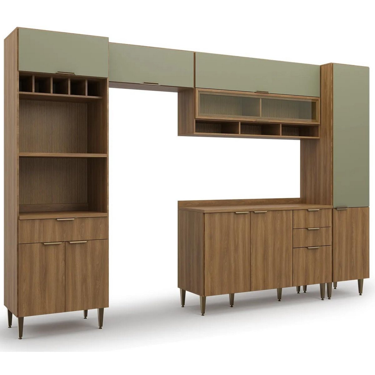Cozinha 5 Peças Paris Nogal Manchester/Verde Matte – BATROL MÓVEIS